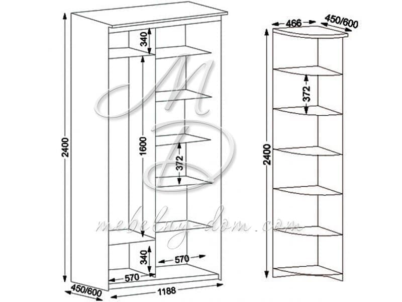 ГлавнаяШкафыШкаф-купе 2х дверный с левым угловым терминалом Орматек