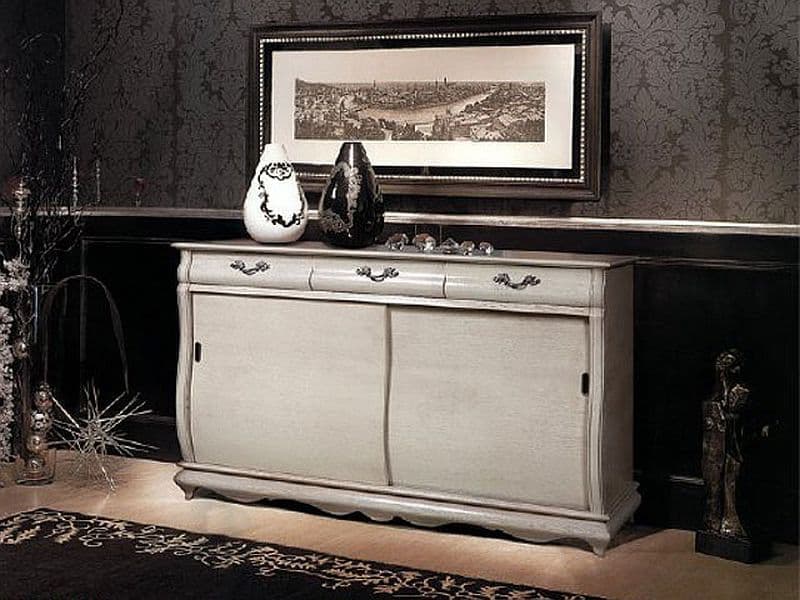 Комод обладает высокой функциональностью благодаря двум вместительным отделениям с удобными раздвижными дверцами, а также трем небольшим выдвижным ящичкам. Верхняя крышка идеально отшлифована до шелковистой структуры и также может быть использована в практичных целях. Такой предмет меблировки, как комод «Оскар», займет достойное место среди уже приобретенной вами мебели и без труда впишется в созданный интерьер.