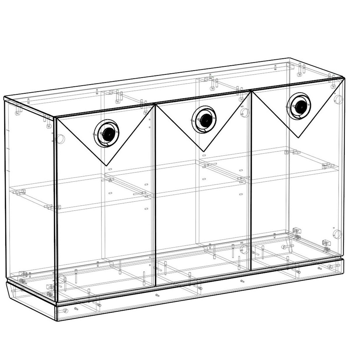 Наполнение изделия представлено в виде трех отделений для закрытого хранения различных вещей. Отделения с дверками внутри дополнительно разделены полками, что позволяет структурировать и упорядочить хранение. </p>