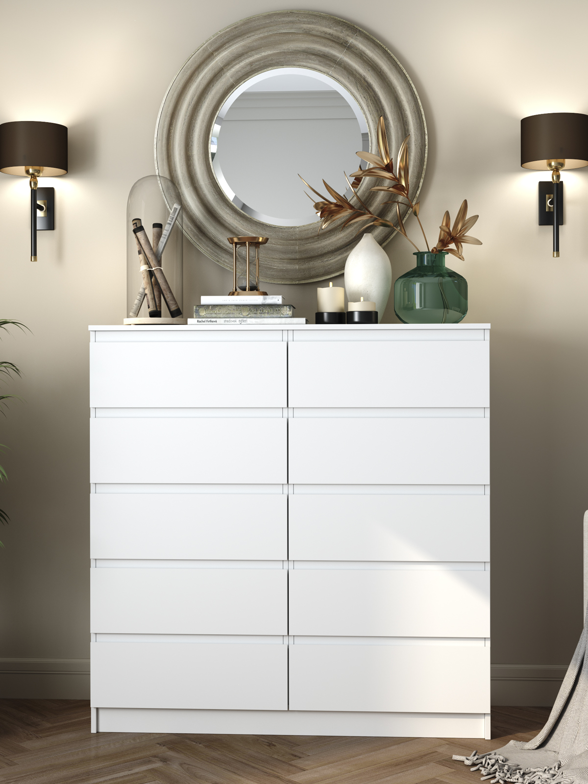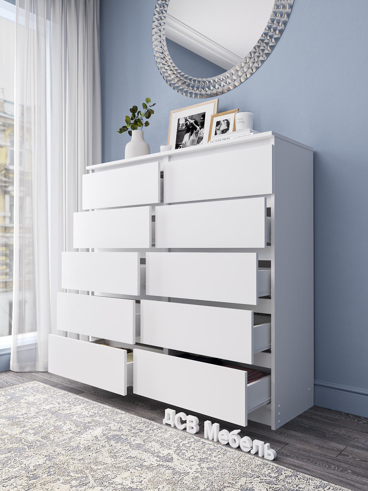 Комод Мори - это идеальное решение для хранения ваших вещей в спальне или гостиной. Он имеет 10 выдвижных ящиков, которые позволяют вам легко организовать пространство и найти все необходимое быстро и удобно.