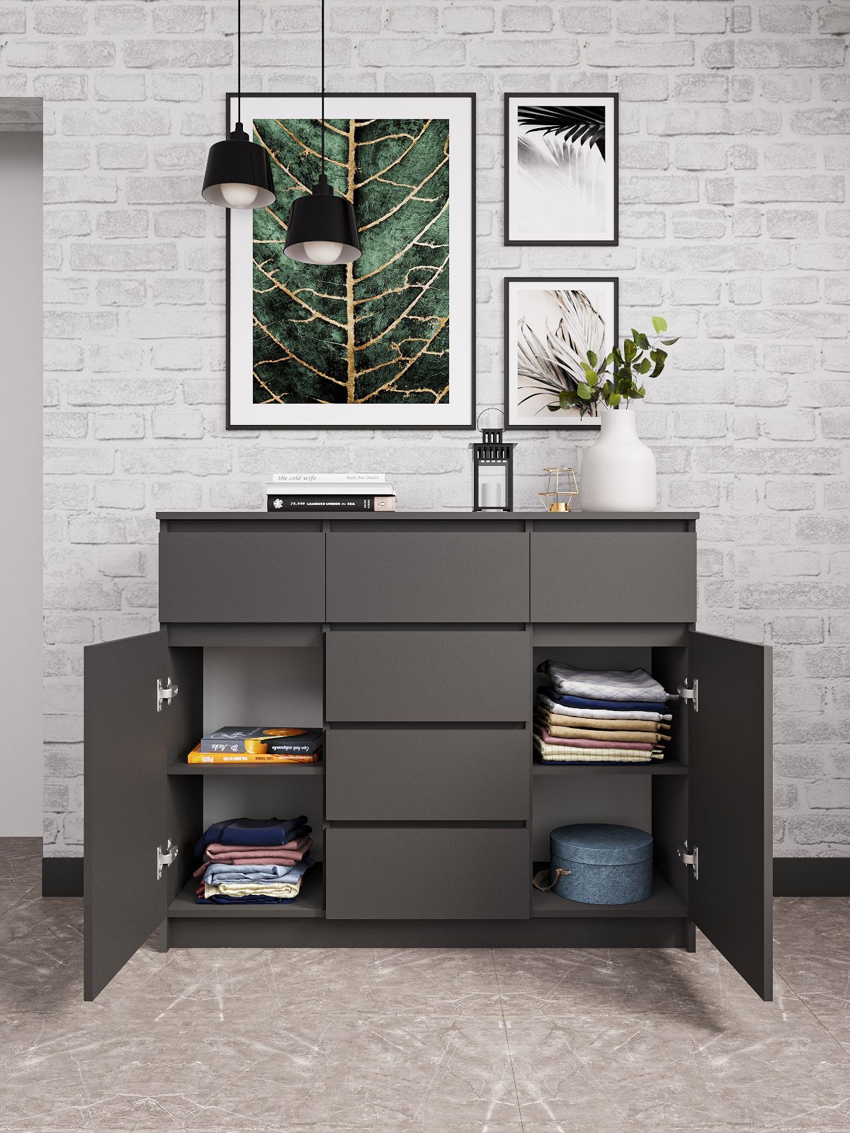 Комод Мори имеет современный дизайн и может стать отличным дополнением к любому интерьеру. Он легко сочетается с другими предметами мебели и создаст гармоничную обстановку в вашем доме.