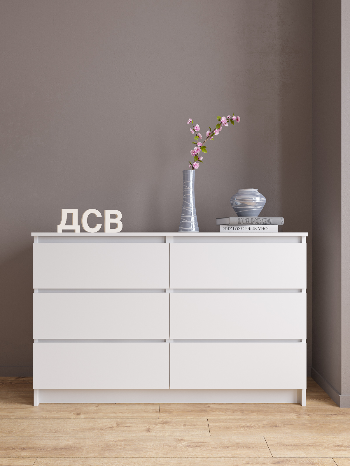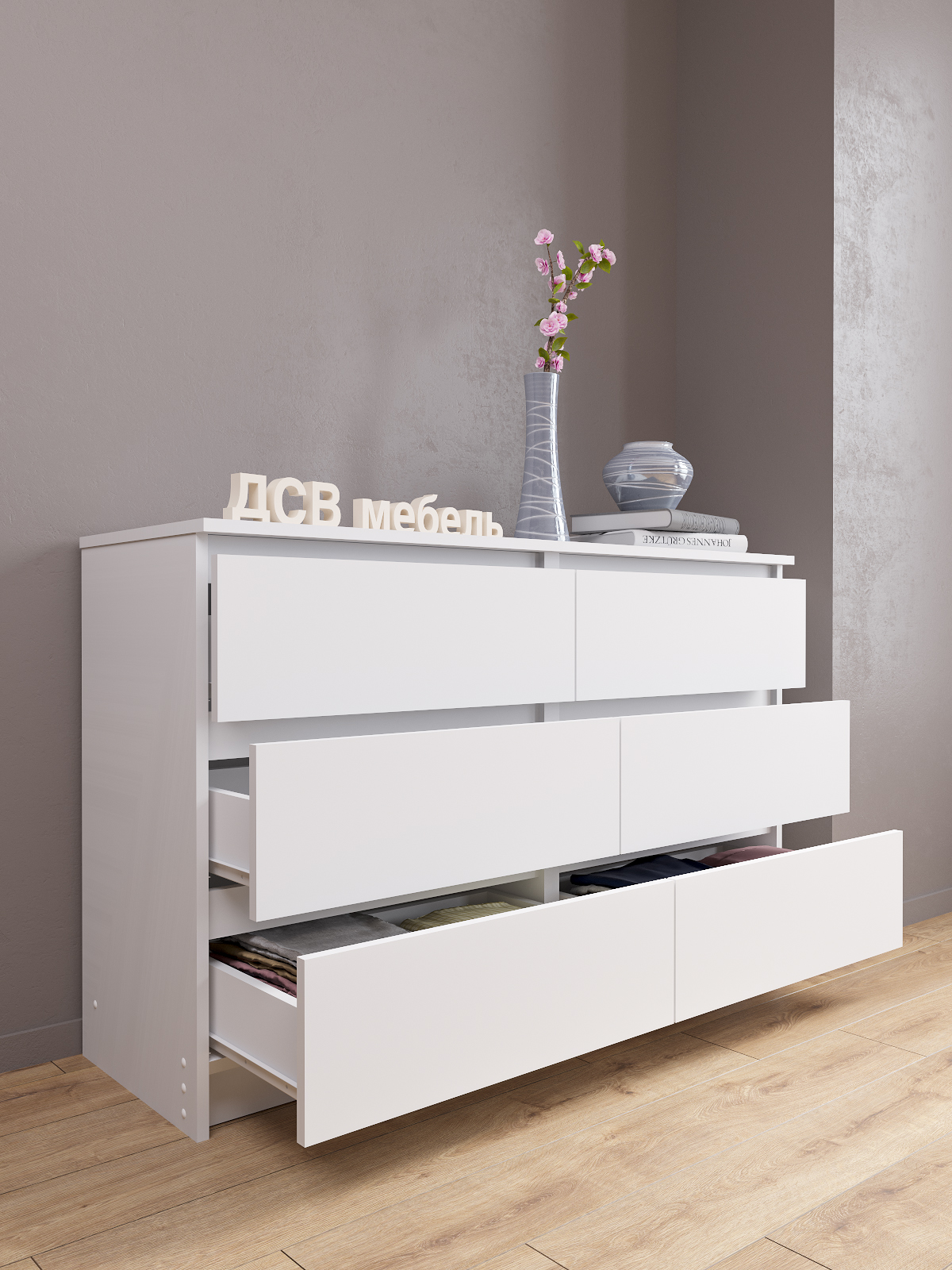 Комод Мори - это идеальное решение для хранения ваших вещей и белья в спальне или гостиную. Он имеет шесть выдвижных ящиков, которые обеспечивают достаточно места для хранения всех необходимых вещей. Комод изготовлен из высококачественного дерева и покрыт ламинированным матовым покрытием, что делает его долговечным и удобным в использовании.
