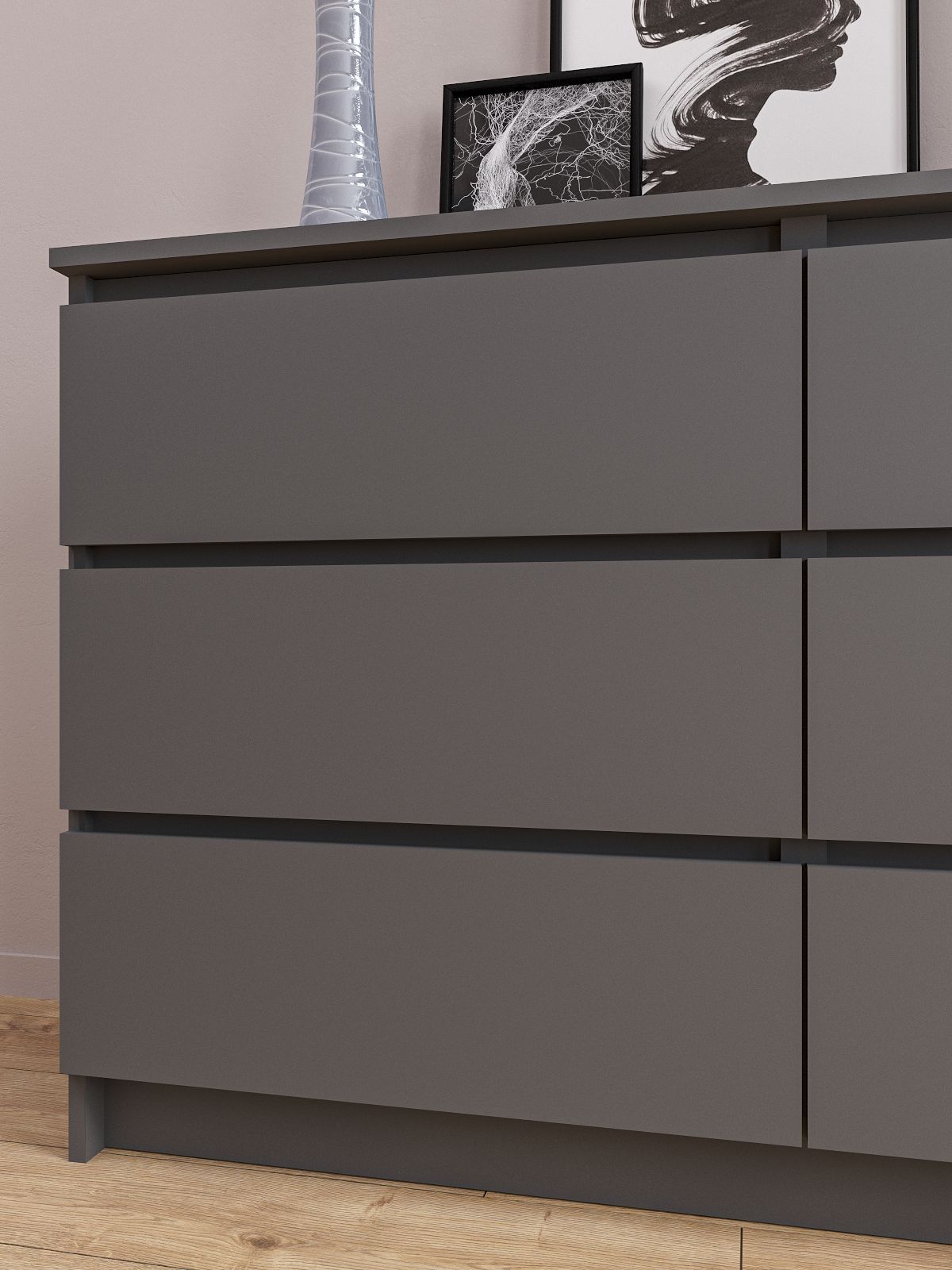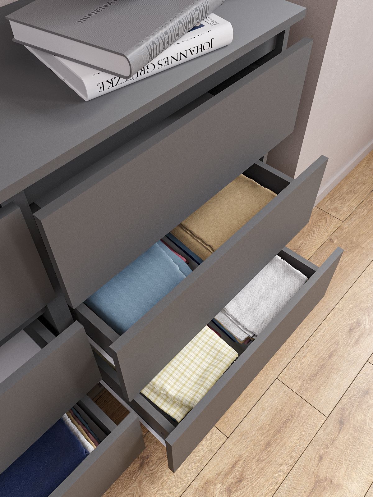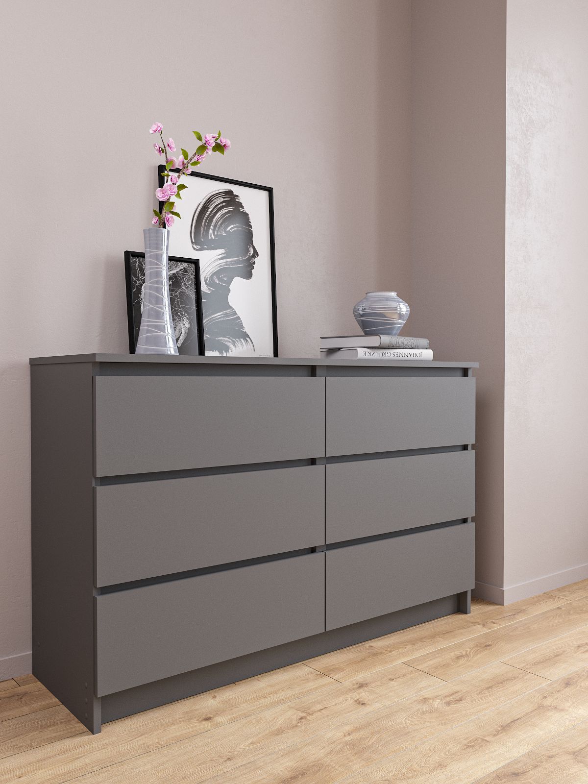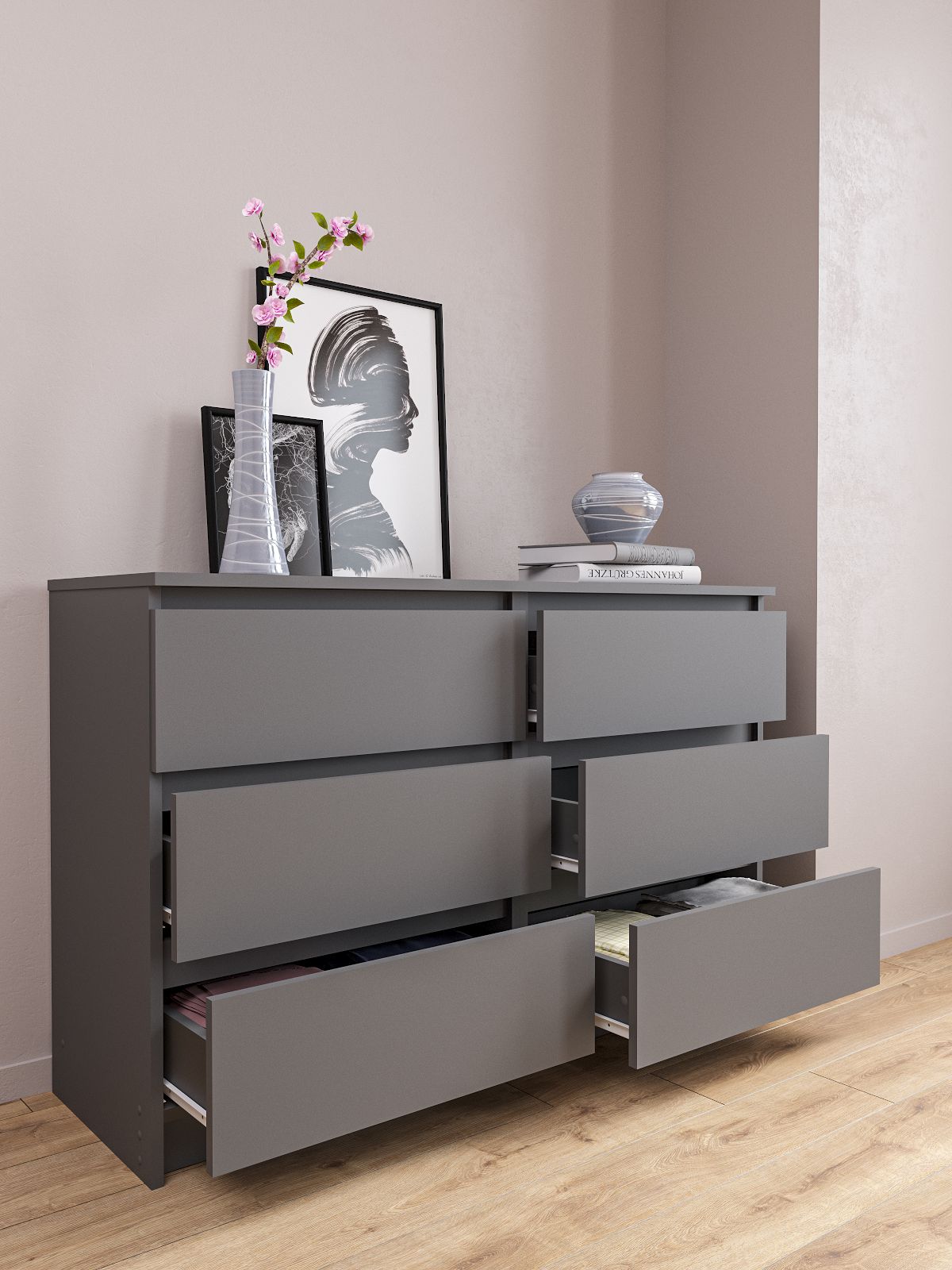 Комод Мори - это идеальное решение для хранения ваших вещей и белья в спальне или гостиную. Он имеет шесть выдвижных ящиков, которые обеспечивают достаточно места для хранения всех необходимых вещей. Комод изготовлен из высококачественного дерева и покрыт ламинированным матовым покрытием, что делает его долговечным и удобным в использовании.