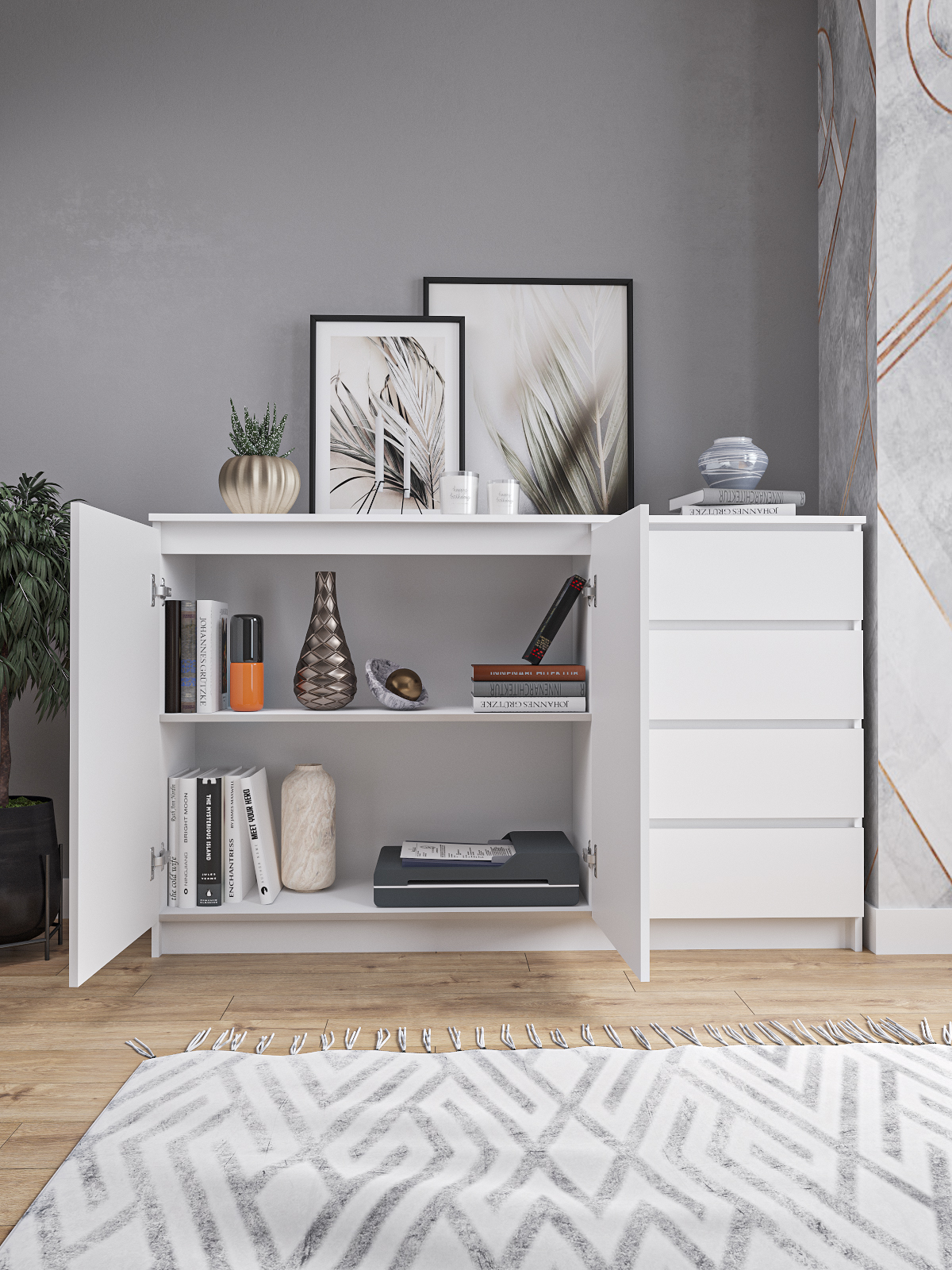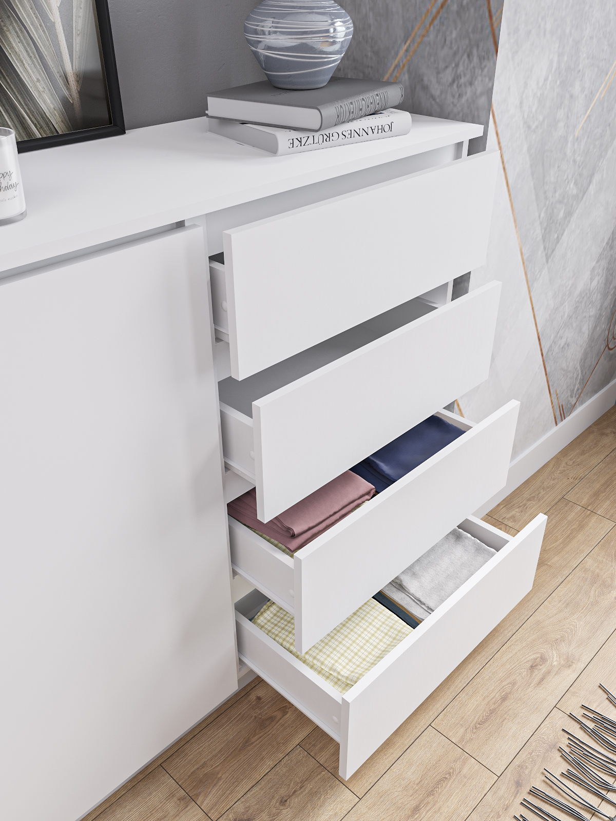 Комод для одежды и вещей Мори - это идеальное решение для тех, кто хочет создать удобную и функциональную систему хранения в своей спальне. Этот современный комод с 4 ящиками предназначен для хранения белья, одежды и других вещей, что делает его незаменимым аксессуаром для любого дома.
