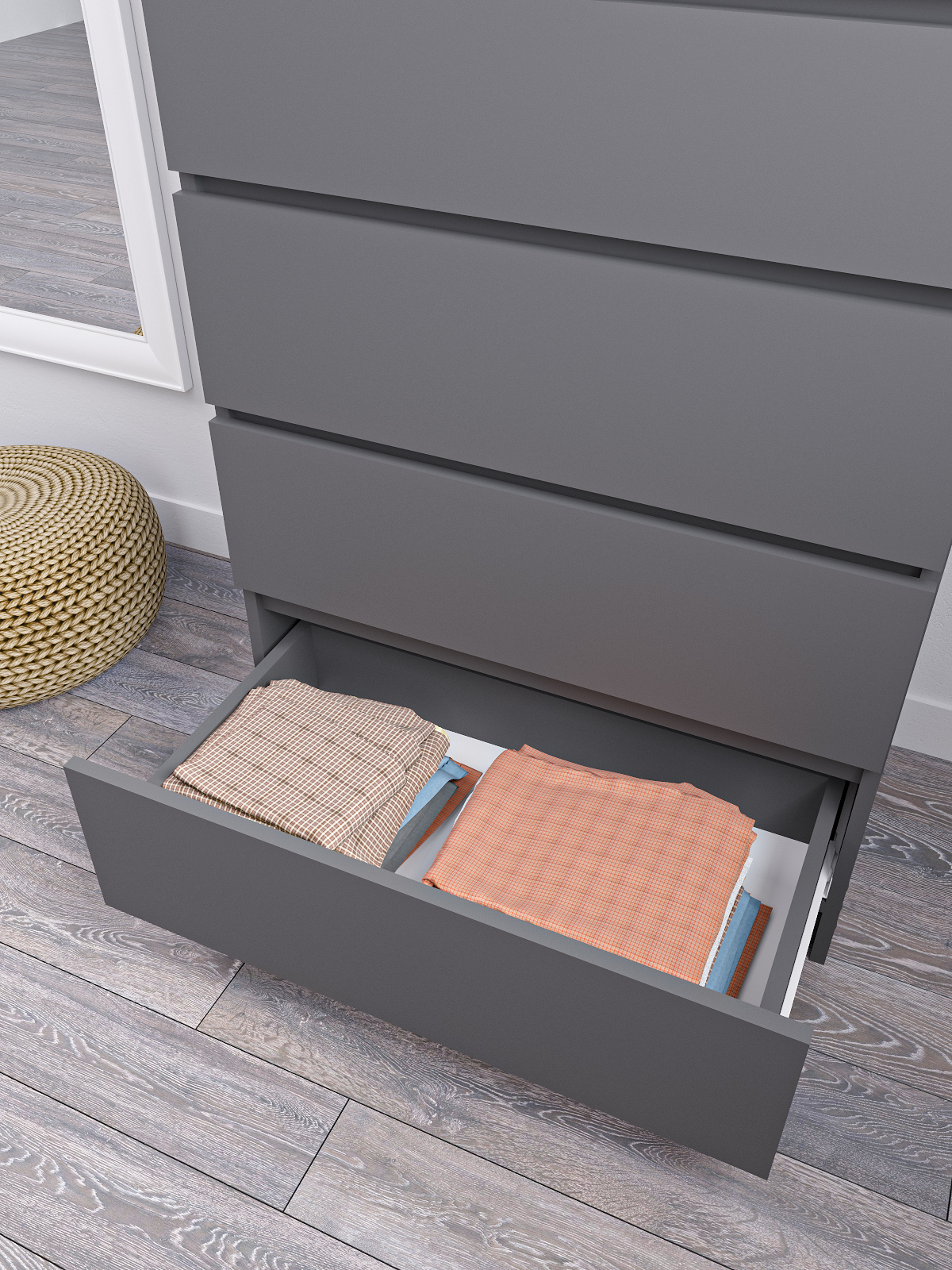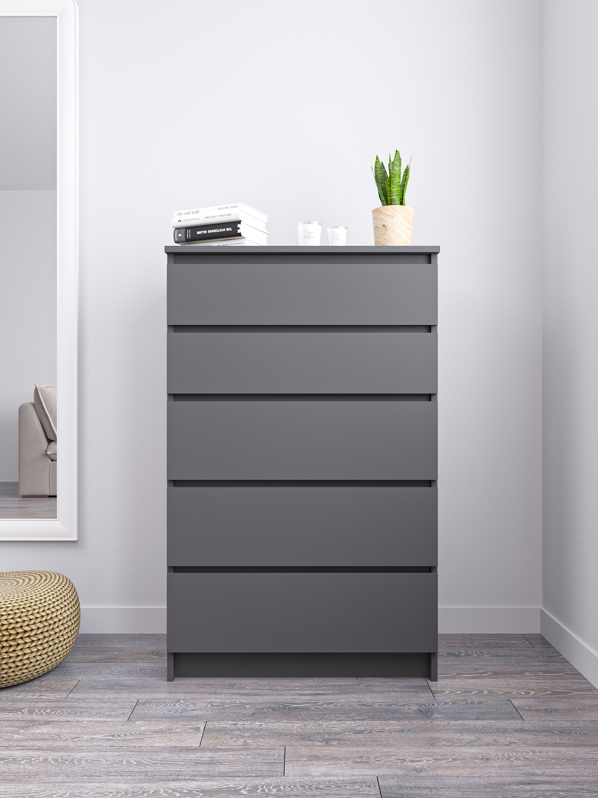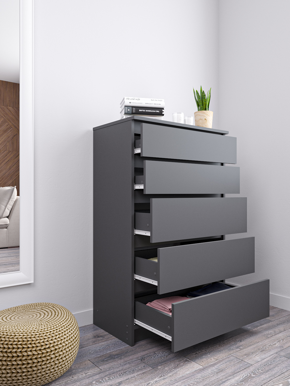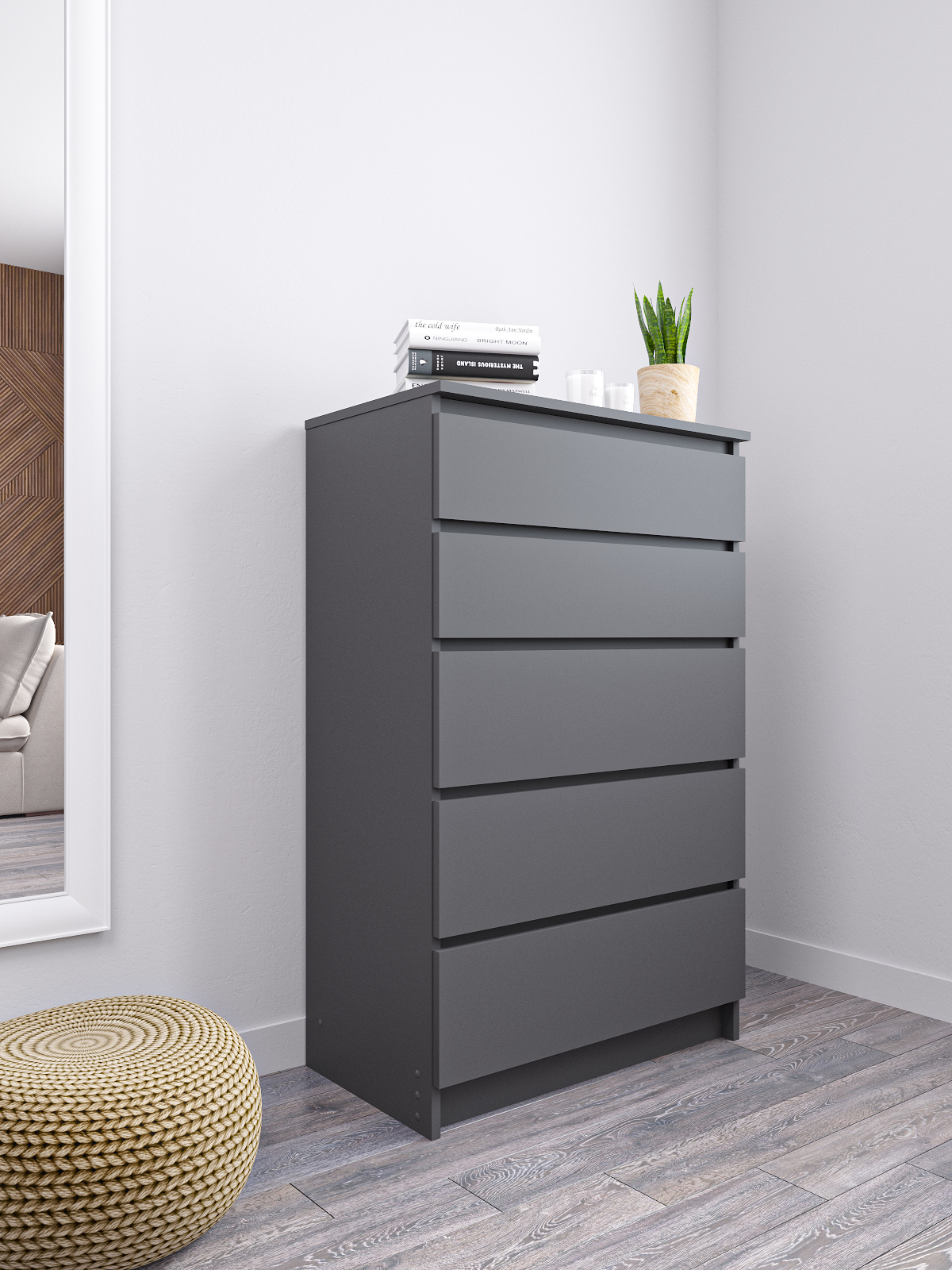 Комод для одежды и вещей Мори - это идеальное решение для тех, кто хочет создать удобную и функциональную систему хранения в своей спальне. Этот современный комод с 5 ящиками предназначен для хранения белья, одежды и других вещей, что делает его незаменимым аксессуаром для любого дома.