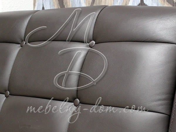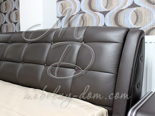 бивка изголовья кровати выполнена из натуральной кожи, а боковые царги из искусственной экокожи, все элементы декорированы стегаными пуговицами.