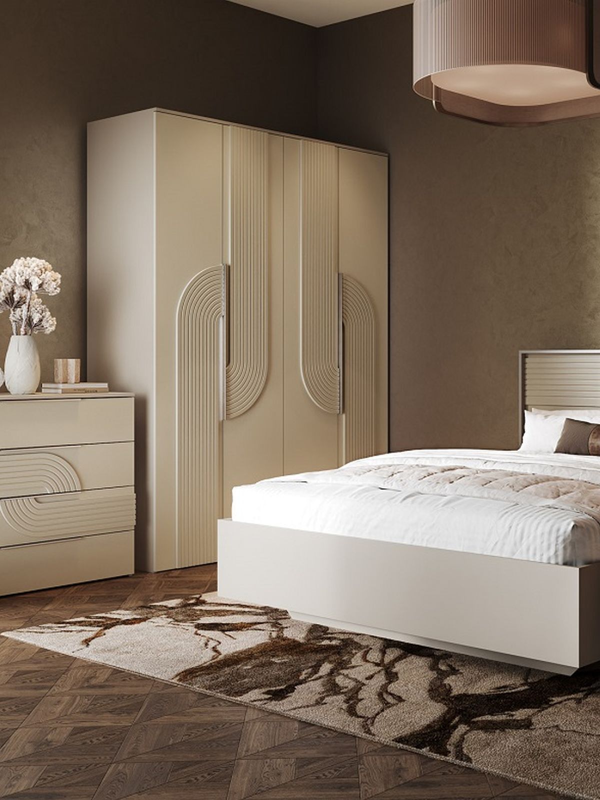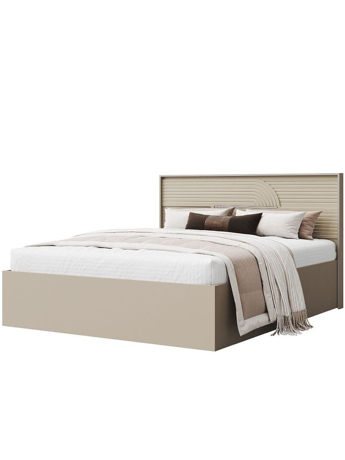 Кровать с подъемным механизмом и ящиком для белья «Монтиз» 1РМ КМК 1003.22 160x200см, каркас изготовлен из ЛДСП цвета шадэ песочныйй, изголовье из МДФ цвета персидский жемчуг. Детали кровати, которые в эксплуатации подвержены механическим повреждениям, облицованы кромкой ПВХ толщиной 2 мм. В кровати используется ортопедическое основание с подъемным механизмом. Под подъемным механизмом находится отделение для хранения белья.
