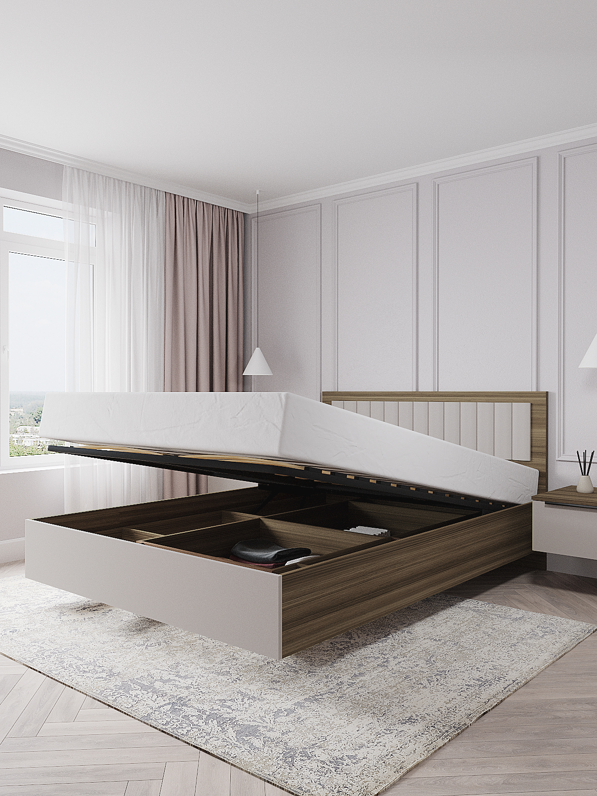 Кровать «Роза» — это элегантная и удобная кровать, которая станет прекрасным дополнением к любому интерьеру. Изголовье выполнено из расширенной ЛДСП плиты толщиной 32 мм. и МДФ вставки, которая придает кровати дополнительную элегантность. Ортопедическое основание на газлифтах обеспечивает легкий доступ к хранилищам внутри кровати, которые вы можете использовать для хранения постельного белья, одежды и других вещей.
