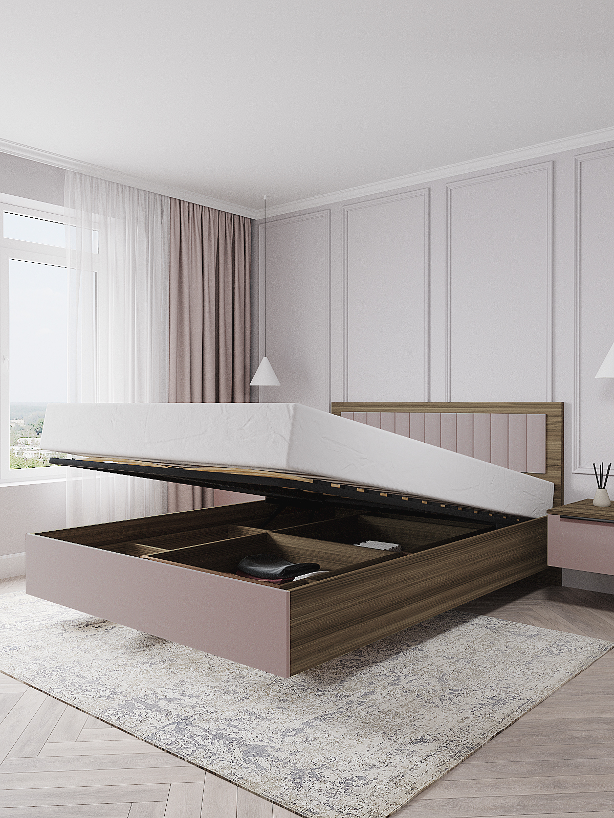 Кровать «Роза» — это элегантная и удобная кровать, которая станет прекрасным дополнением к любому интерьеру. Изголовье выполнено из расширенной ЛДСП плиты толщиной 32 мм. и МДФ вставки, которая придает кровати дополнительную элегантность. Ортопедическое основание на газлифтах обеспечивает легкий доступ к хранилищам внутри кровати, которые вы можете использовать для хранения постельного белья, одежды и других вещей.
