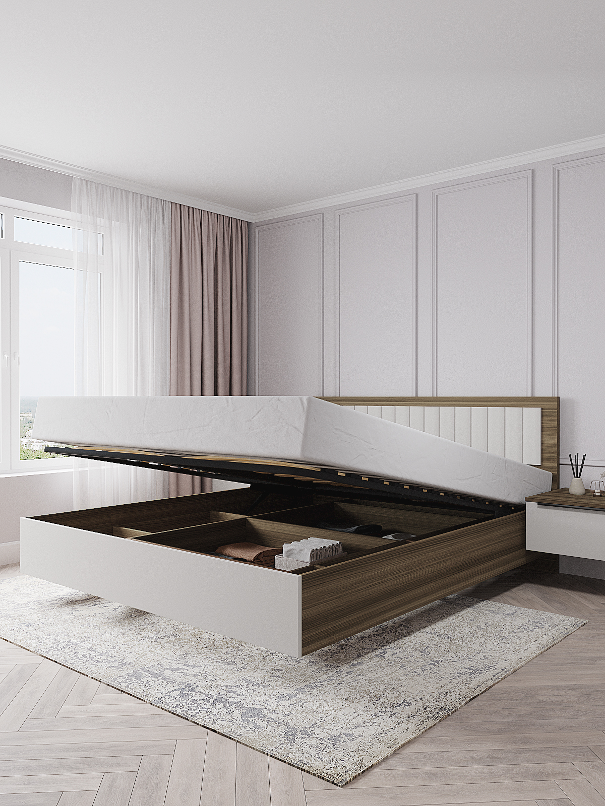 Кровать «Роза» — это элегантная и удобная кровать, которая станет прекрасным дополнением к любому интерьеру. Изголовье выполнено из расширенной ЛДСП плиты толщиной 32 мм. и МДФ вставки, которая придает кровати дополнительную элегантность. Ортопедическое основание на газлифтах обеспечивает легкий доступ к хранилищам внутри кровати, которые вы можете использовать для хранения постельного белья, одежды и других вещей.