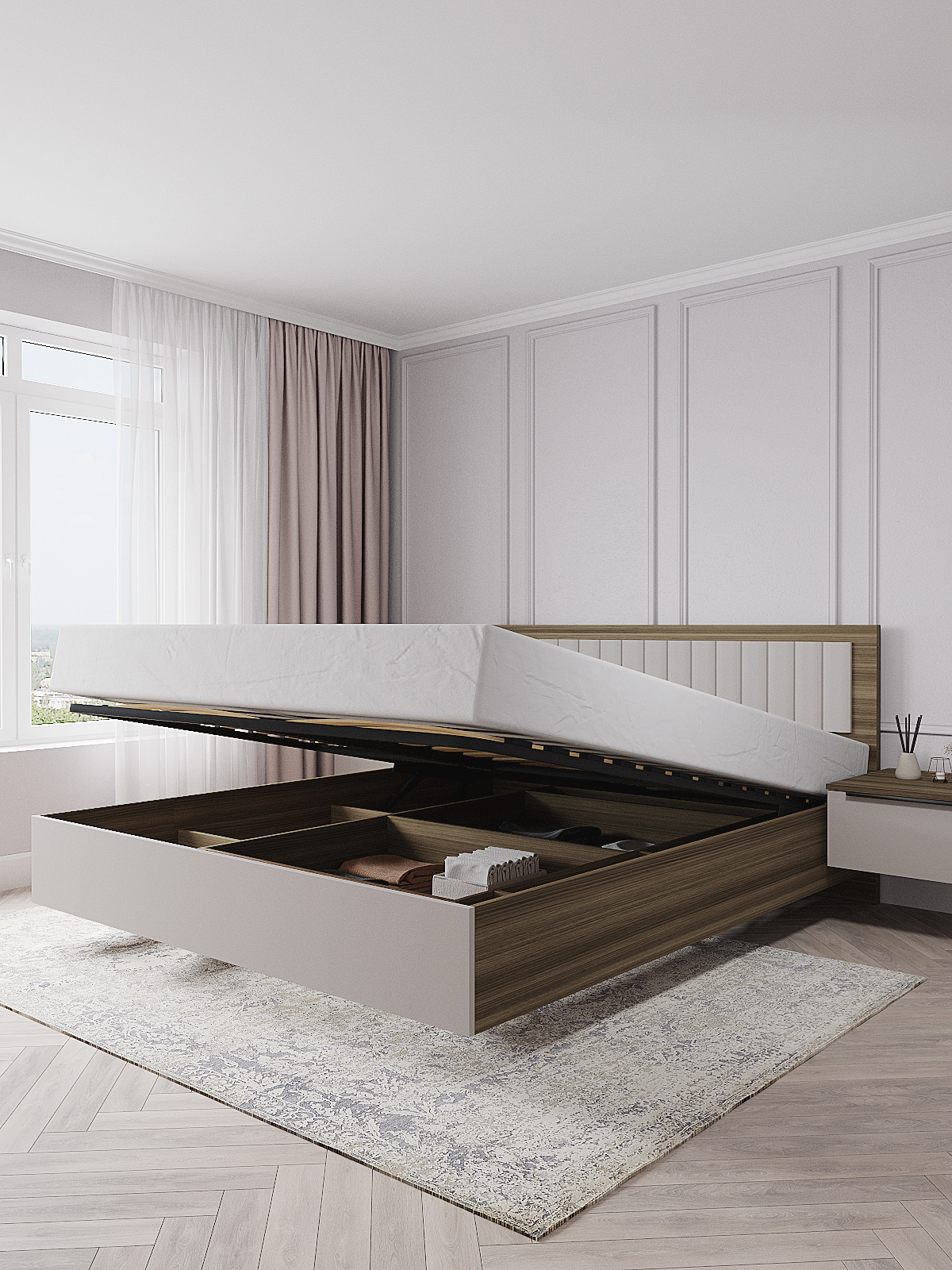 Кровать «Роза» — это элегантная и удобная кровать, которая станет прекрасным дополнением к любому интерьеру. Изголовье выполнено из расширенной ЛДСП плиты толщиной 32 мм. и МДФ вставки, которая придает кровати дополнительную элегантность. Ортопедическое основание на газлифтах обеспечивает легкий доступ к хранилищам внутри кровати, которые вы можете использовать для хранения постельного белья, одежды и других вещей.