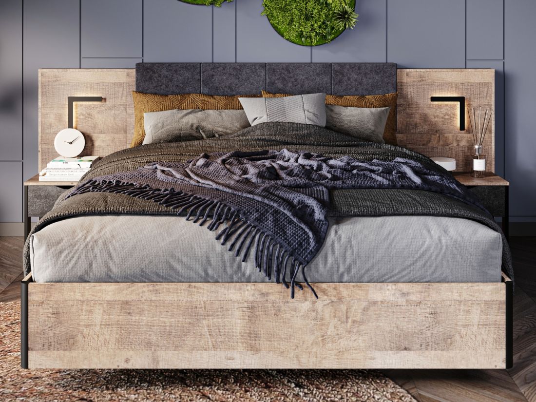Кровать двуспальная «Стокгольм» 140 МИ – современное решение для спальни в стилях лофт, сканди или эко-минимализм. Трендовый декор «Дуб Гранж» песочного оттенка с реалистичной имитацией вручную обработанного дерева, выразительными зернистыми текстурами и характерной формой досок, соответствует последним городским тенденциям. Скрытые опоры основания придают эффект парения, создают завораживающий футуристический интерьер. Накладные светильники и подсветка по периметру дают дополнительное освещение в ночное время, а мягкая накладка с вертикальной прострочкой комфортно поддерживает спину во время отдыха.