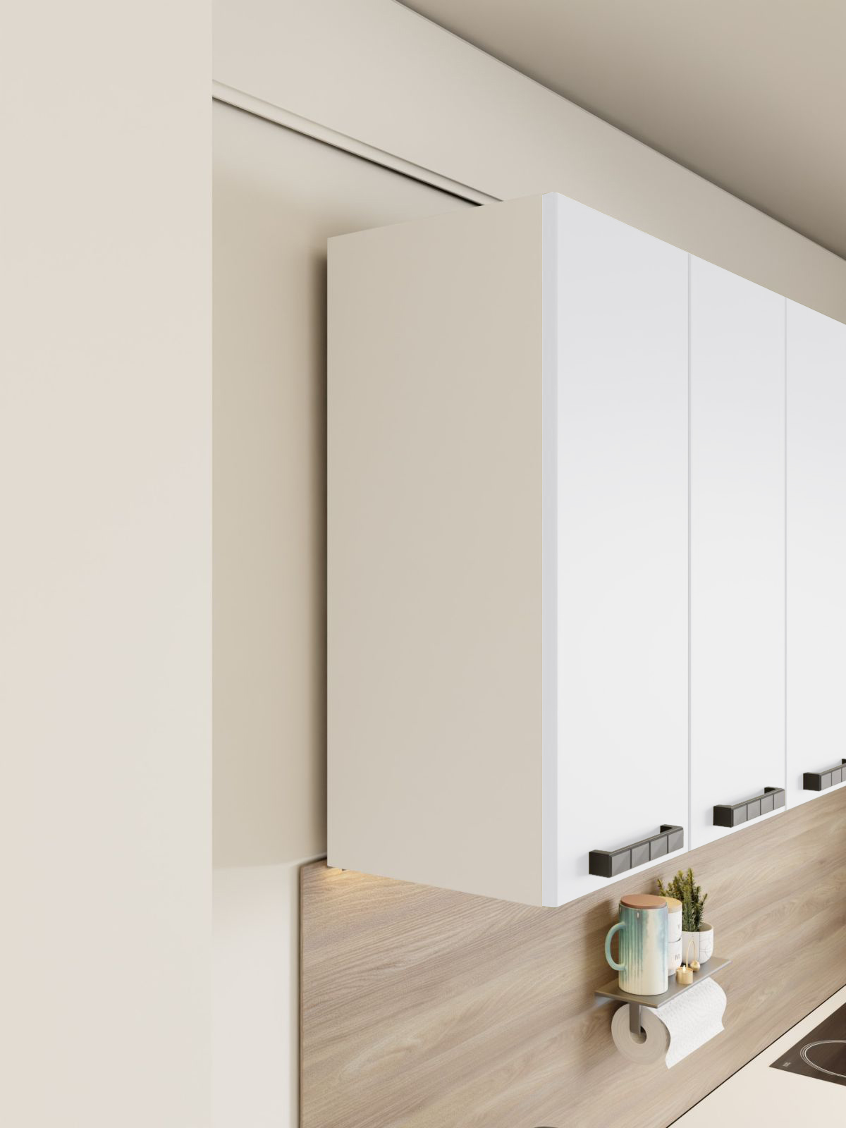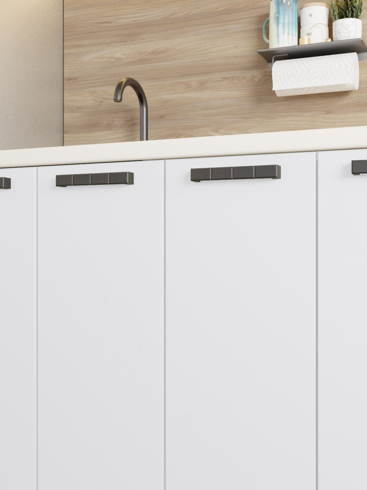 Фасады кухни имеют гладкую поверхность, что предотвращает скапливание пыли и грязи.