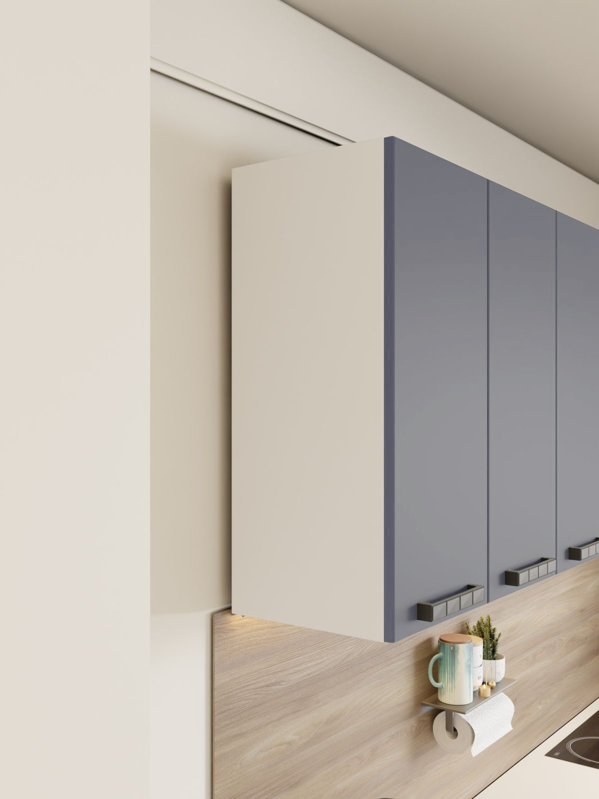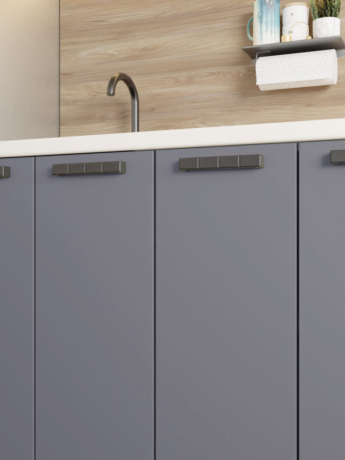 Фасады кухни имеют гладкую поверхность, что предотвращает скапливание пыли и грязи.