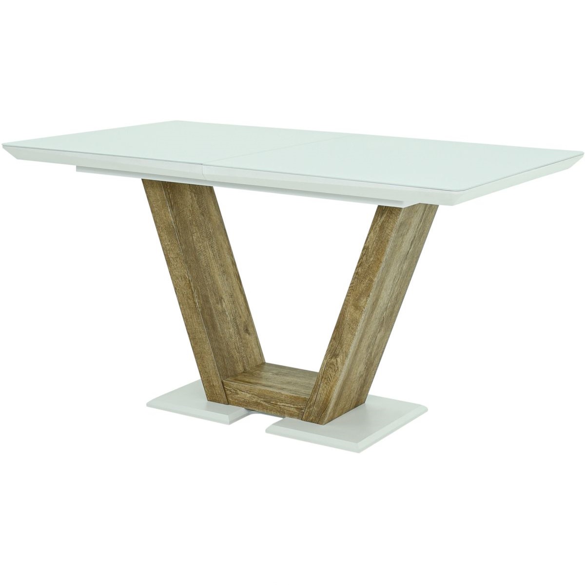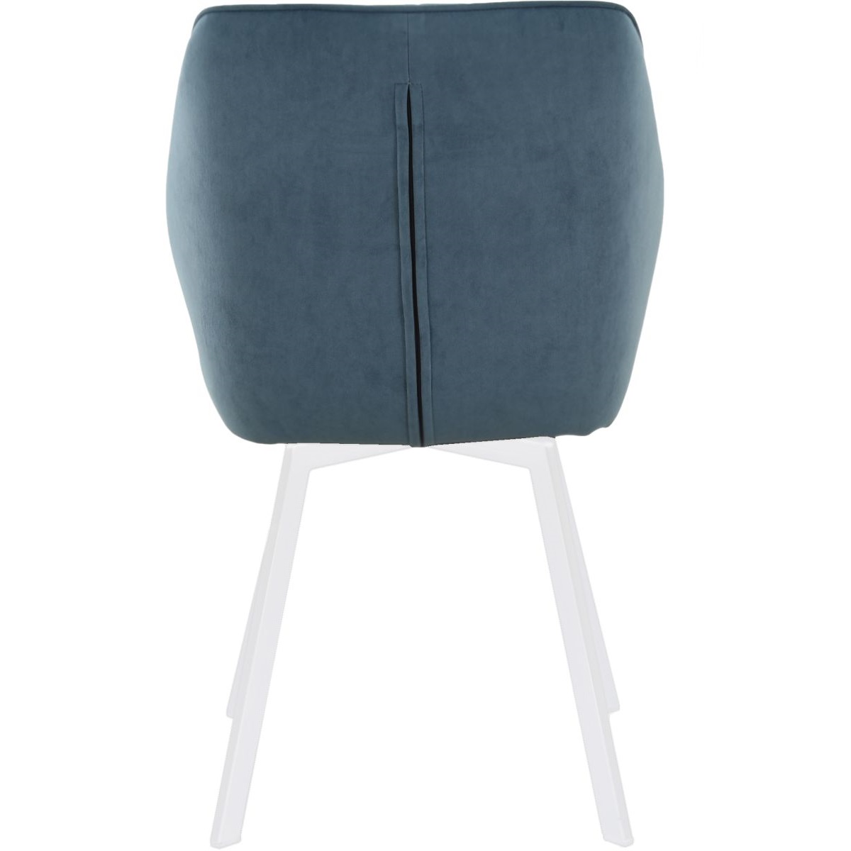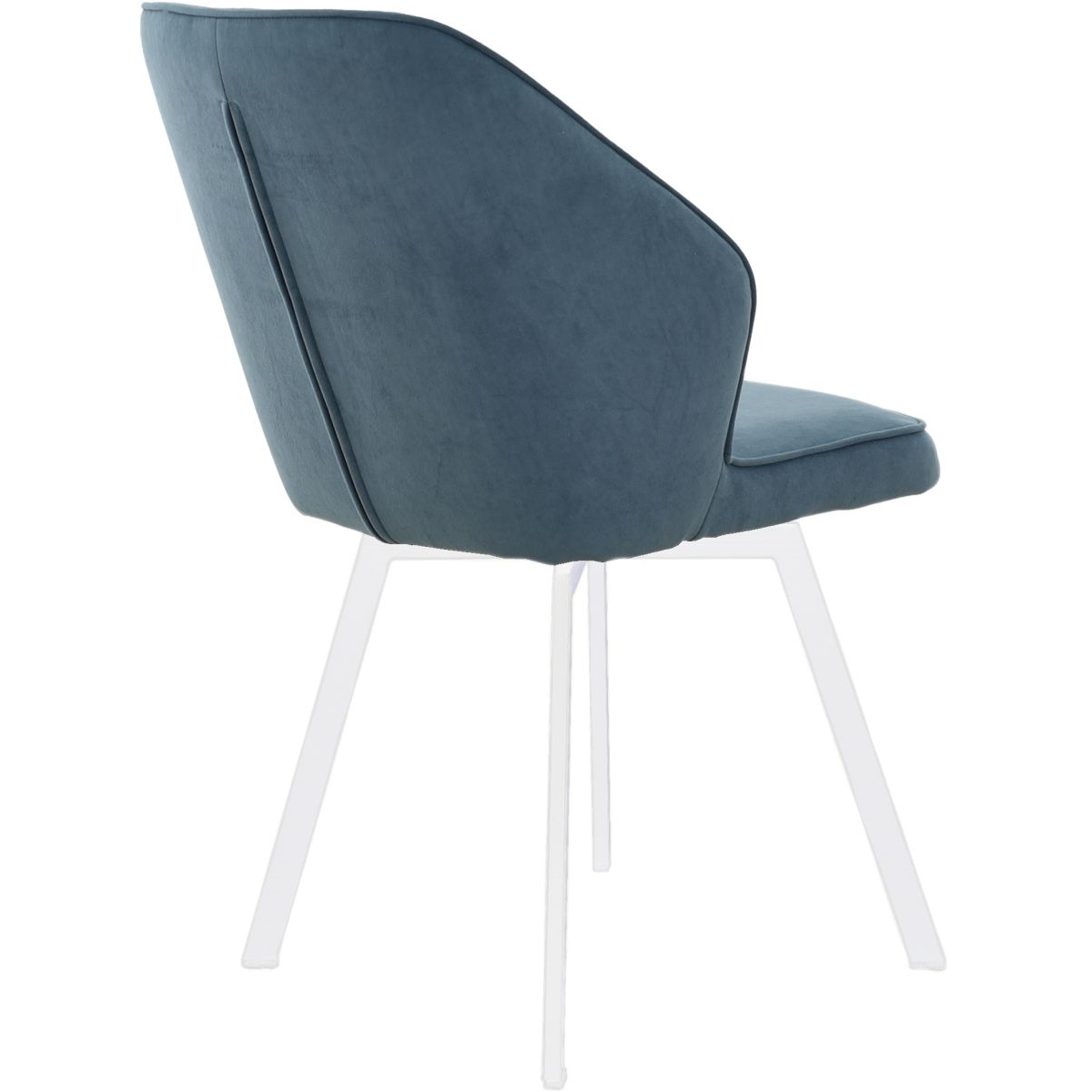 Обеденная группа, состоящая из стола «Торонто» в крашении белого цвета, со стеклянной поверхностью и 4-х стульев «Вермут», на вращающихся каркасах, исполненных в ткани Бренди классик блу — изготовленной Димитровградской мебельной фабрикой «Аврора».
