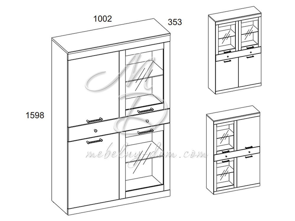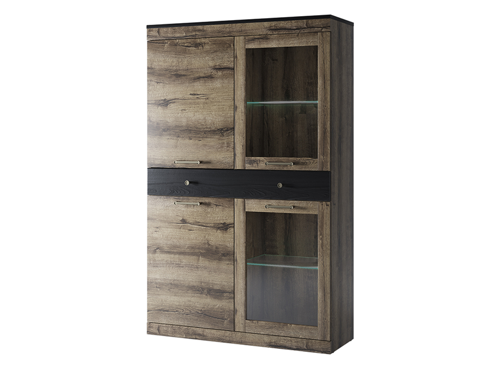Шкаф с витриной 2V2D1S, JAGGER, цвет Дуб монастырский /Черный