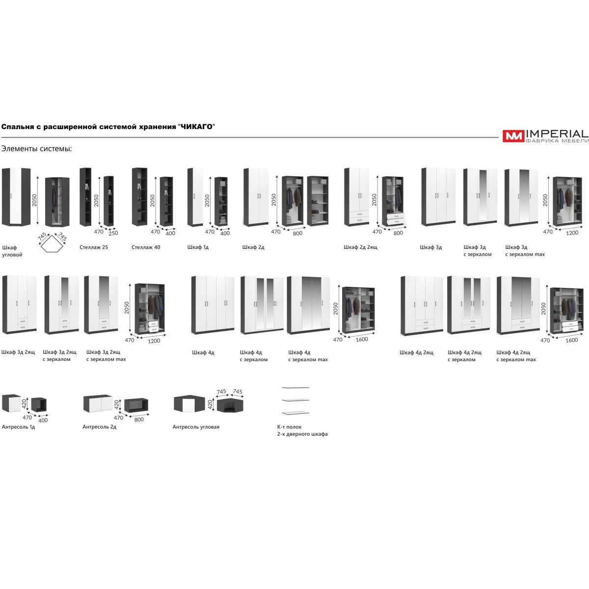 Серия мебели Чикаго - универсальное решение для хранения вещей. Дизайн, выполненный в стиле минимализма, подчеркивается четкими линиями и матовыми черными ручками, а нейтральные цвета с зеркалом хорошо сочетаются с разными стилями интерьера и позволяют добавить яркие и насыщенные оттенки, полностью преображая пространство.