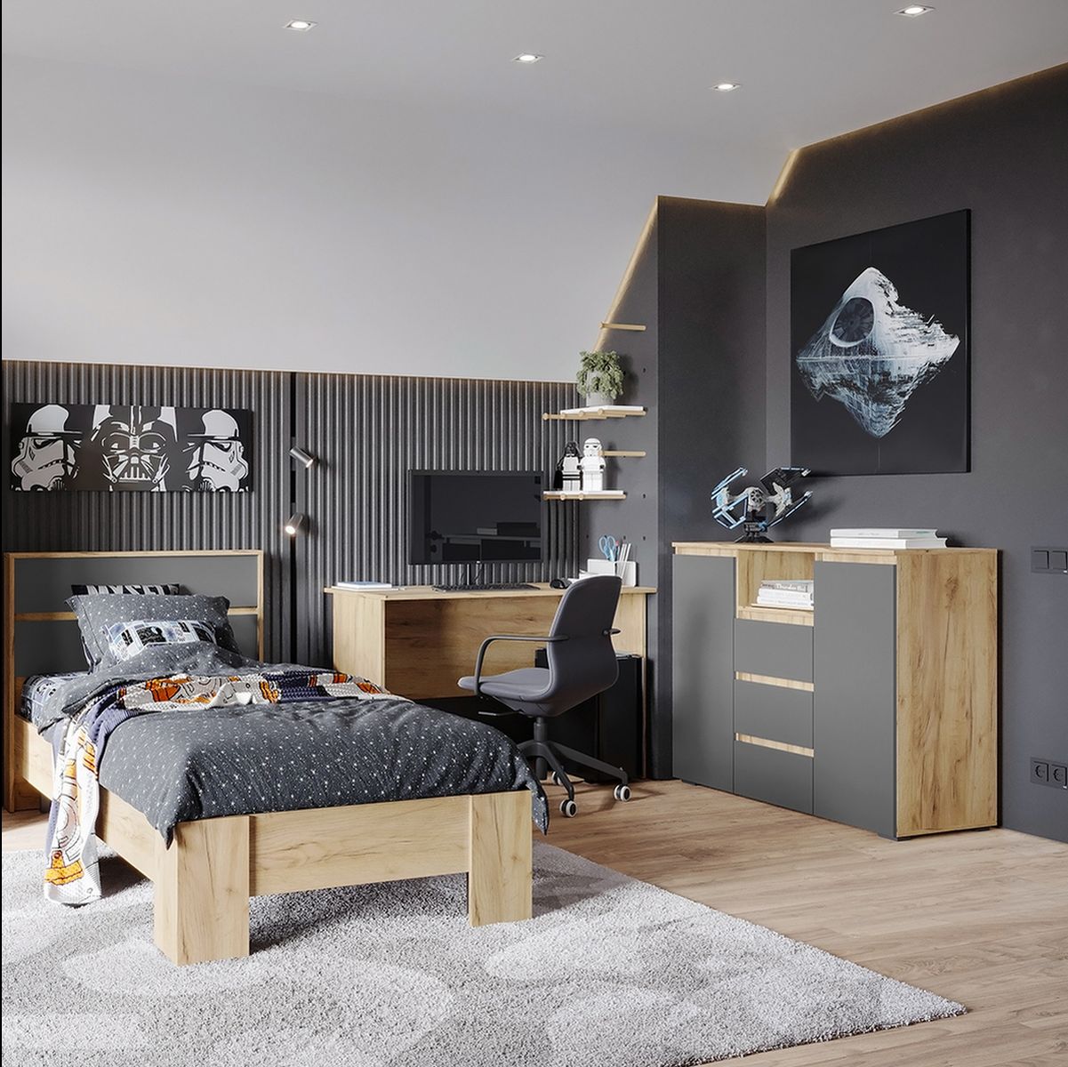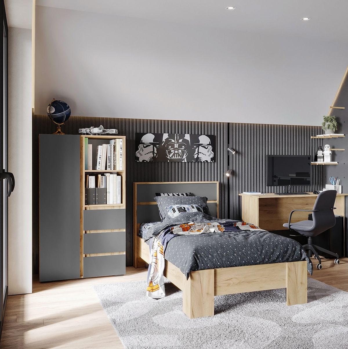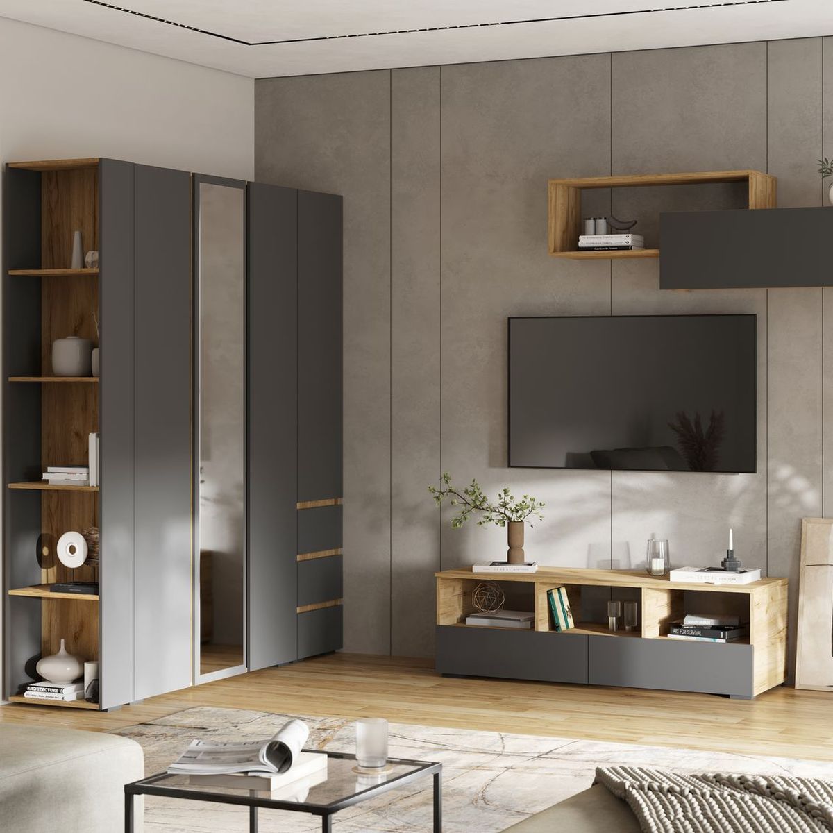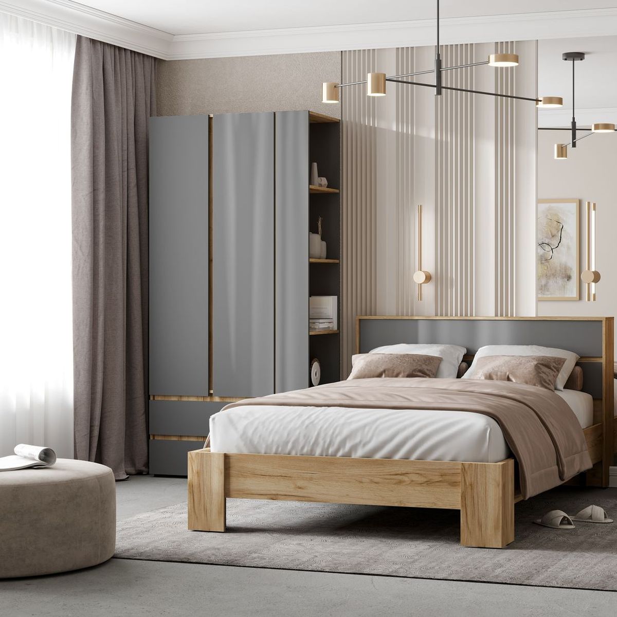 Шкаф «Хелен» ШК-04, графит/дуб крафт золотой