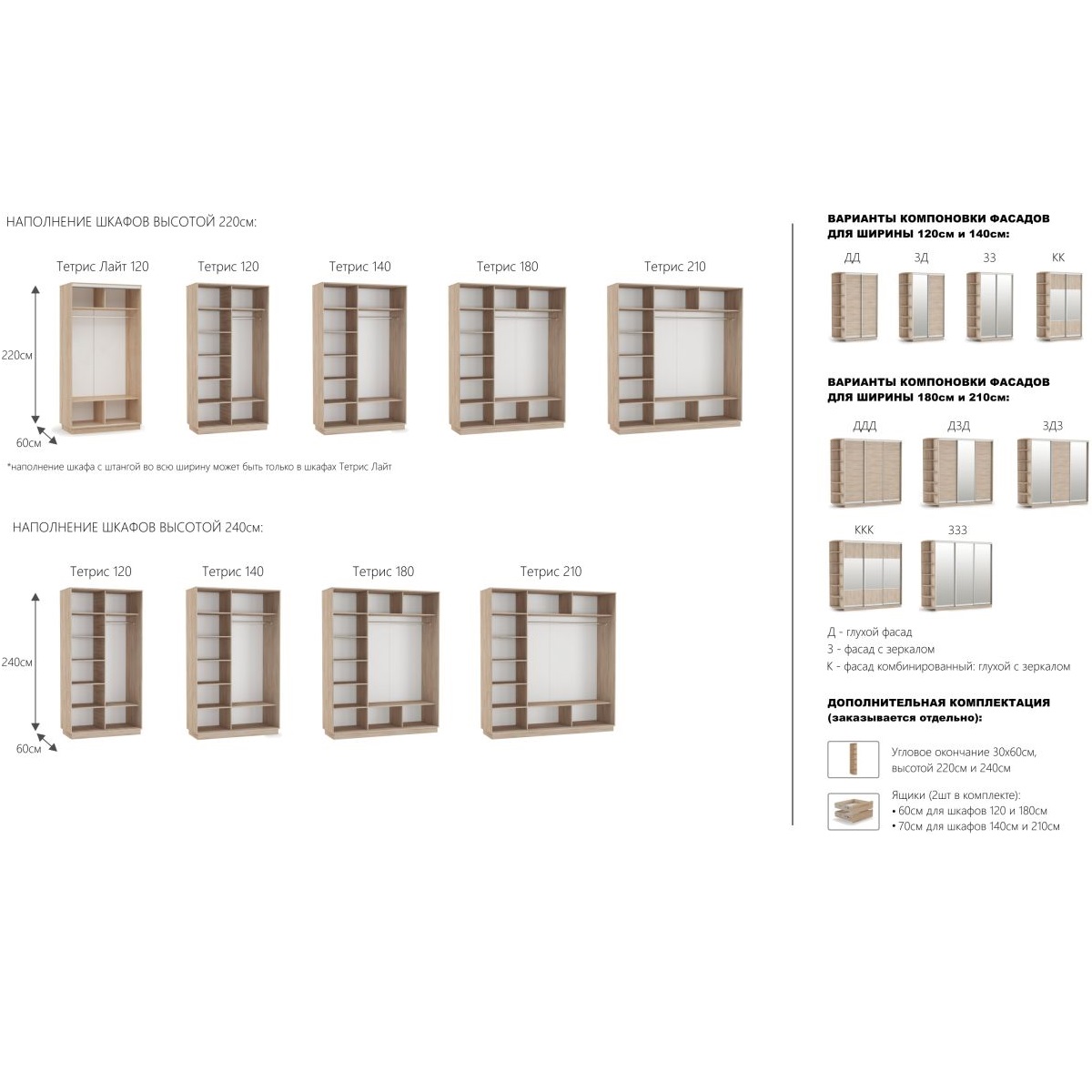 - 60 см для шкафов 120 и 180 см