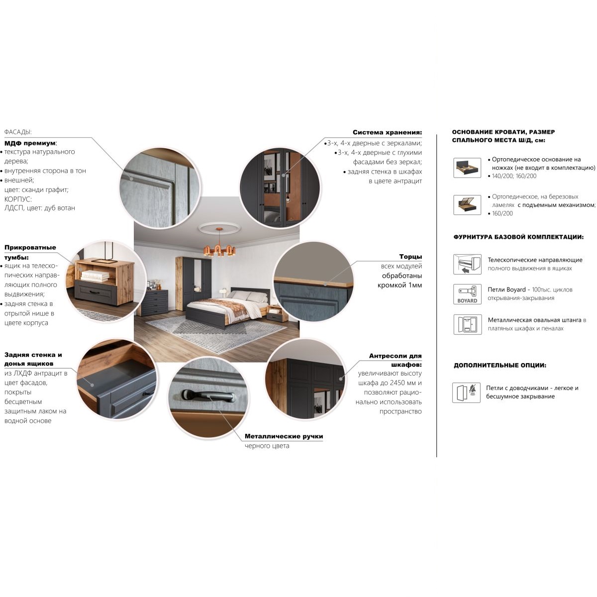 экологически безопасных и надежных материаловМодульная система Лацио Сканди, включает в себя все необходимые элементы для обустройства комнаты в едином стиле: шкафы угловой, 1-но, 2-х, 3-х и 4-х дверные, угловое окончание, комоды, зеркало, прикроватные тумбы, кровати с ортопедическим основанием без ножек. Шкаф с распашной конструкцией дверей, силиконовыми отбойниками, вместительными полками и металлической овальной штангой. Все прямые шкафы Лацио Сканди одной высоты и глубины - позволяют выстроить систему для хранения вещей нужного функционала, можно доукомплектовать антресолью. Все детали мебели обработаны кромкой – надежно защищает края от ударов и механических воздействий. Задняя стенка всех модулей вставлена в паз – её удобно и быстро собирать, отсутствуют перекосы, мебель более устойчивая. Качественная фурнитура - петли BOYARD соответствуют всем современным требованиям безопасности, выдерживают 100 тыс. циклов открывания-закрывания (по ГОСТу достаточно 20 тыс. циклов). Шкафы комплектуются металлической овальной штангой - благодаря своей форме и материалу выдерживают большую нагрузку.