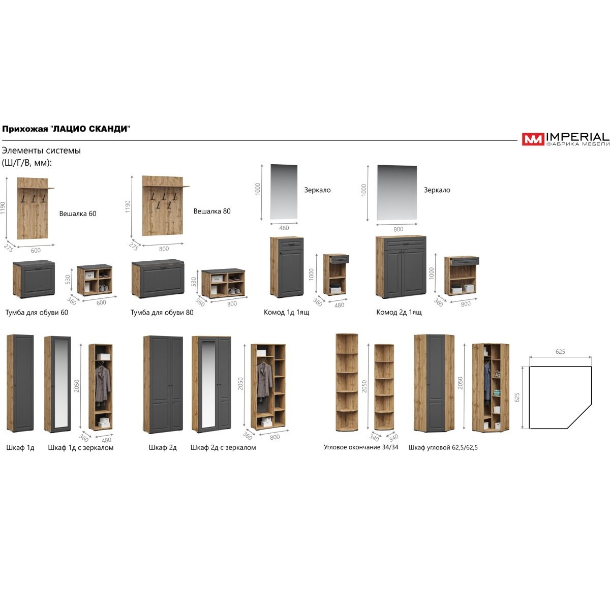 Шкаф «Лацио Сканди» 1д ПР (с зеркалом), Вотан/Сканди графит