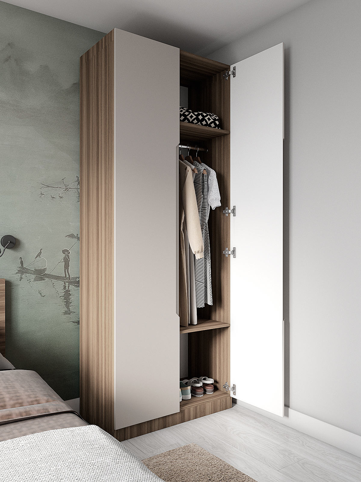 Серия шкафов «Роза» – это коллекция модульных шкафов, которая предлагает множество вариантов для организации хранения вещей. Ключевой особенностью этих шкафов является возможность конфигурации внутреннего наполнения, которая позволяет создавать индивидуальные решения. Базовая комплектация шкафа «Роза» включает две полки и штангу для вешалок, однако можно выбрать любое количество полок и ящиков, а также определить их расположение. Это все позволит создать полноценную гардеробную систему.