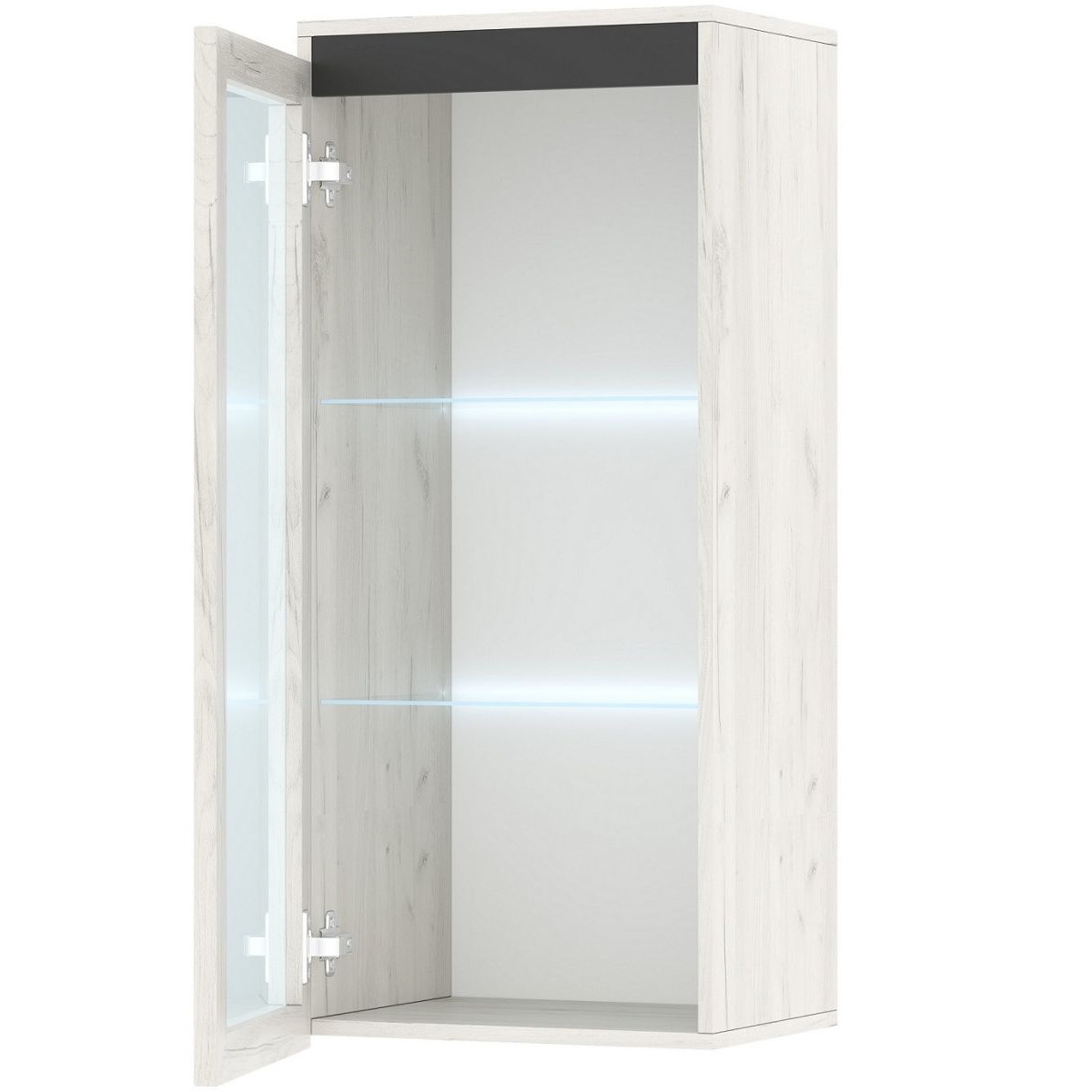 Шкаф с витриной «Гретта» 1В навесной, Крафт белый-Антрацит