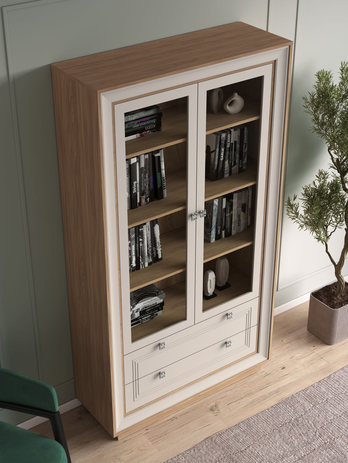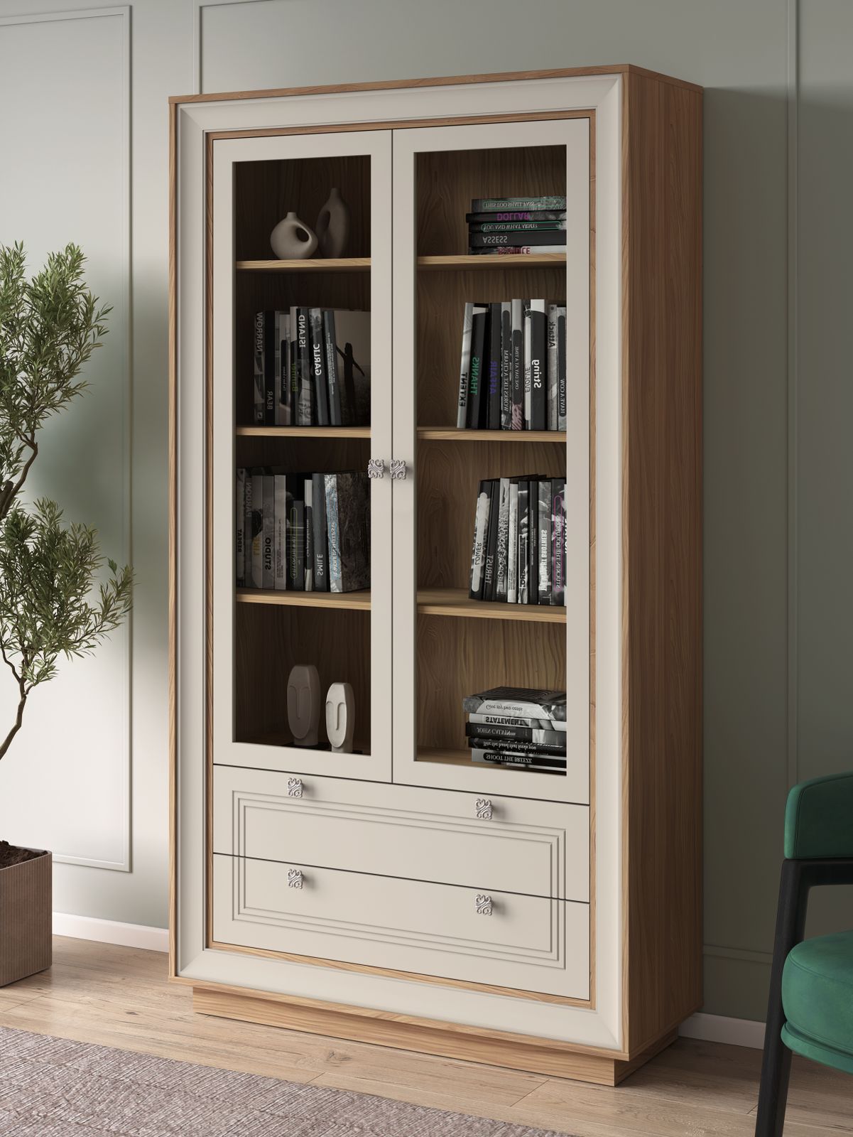 Шкаф с витриной «Прато» 2дв, вяз/газания матовый