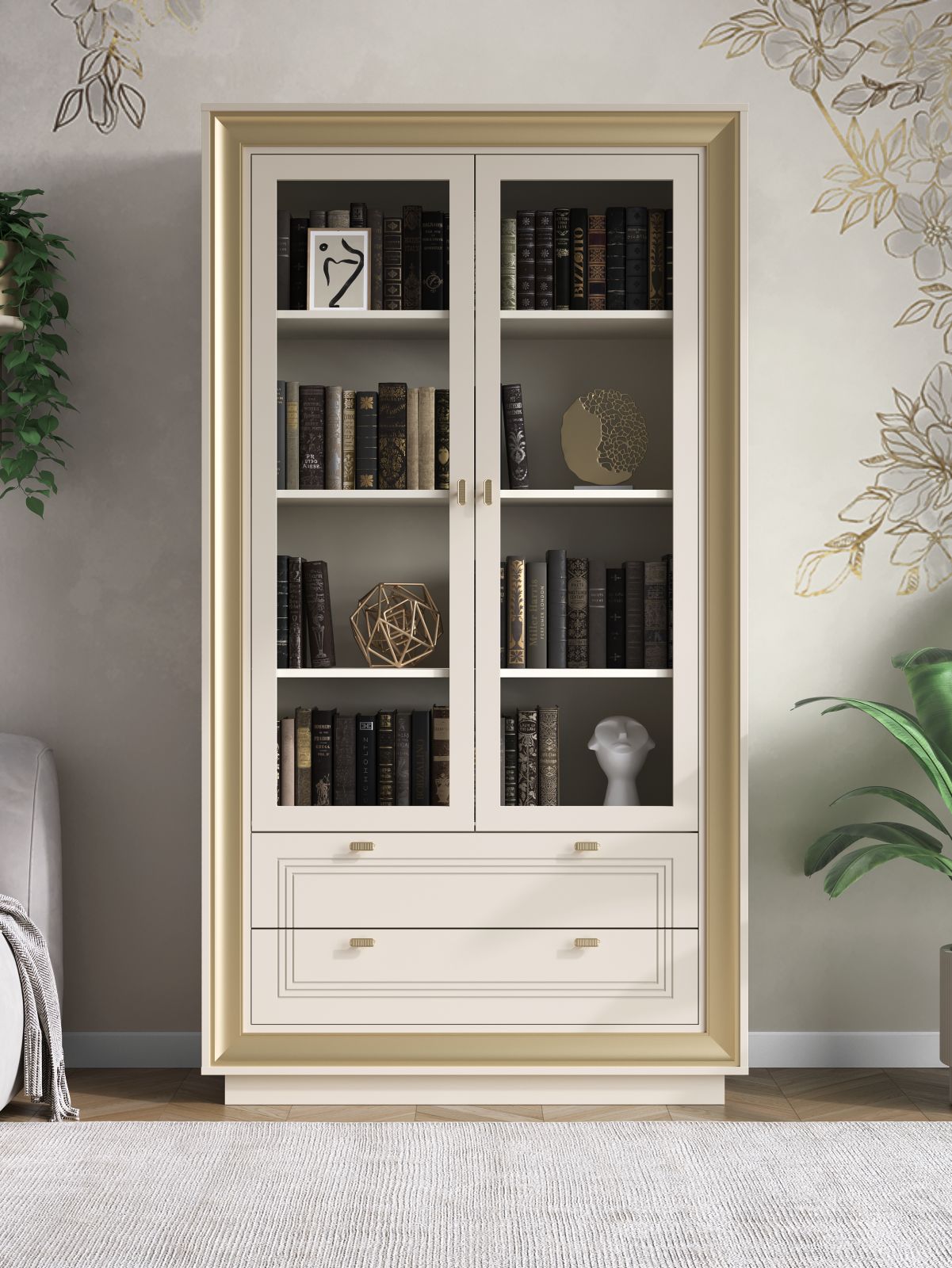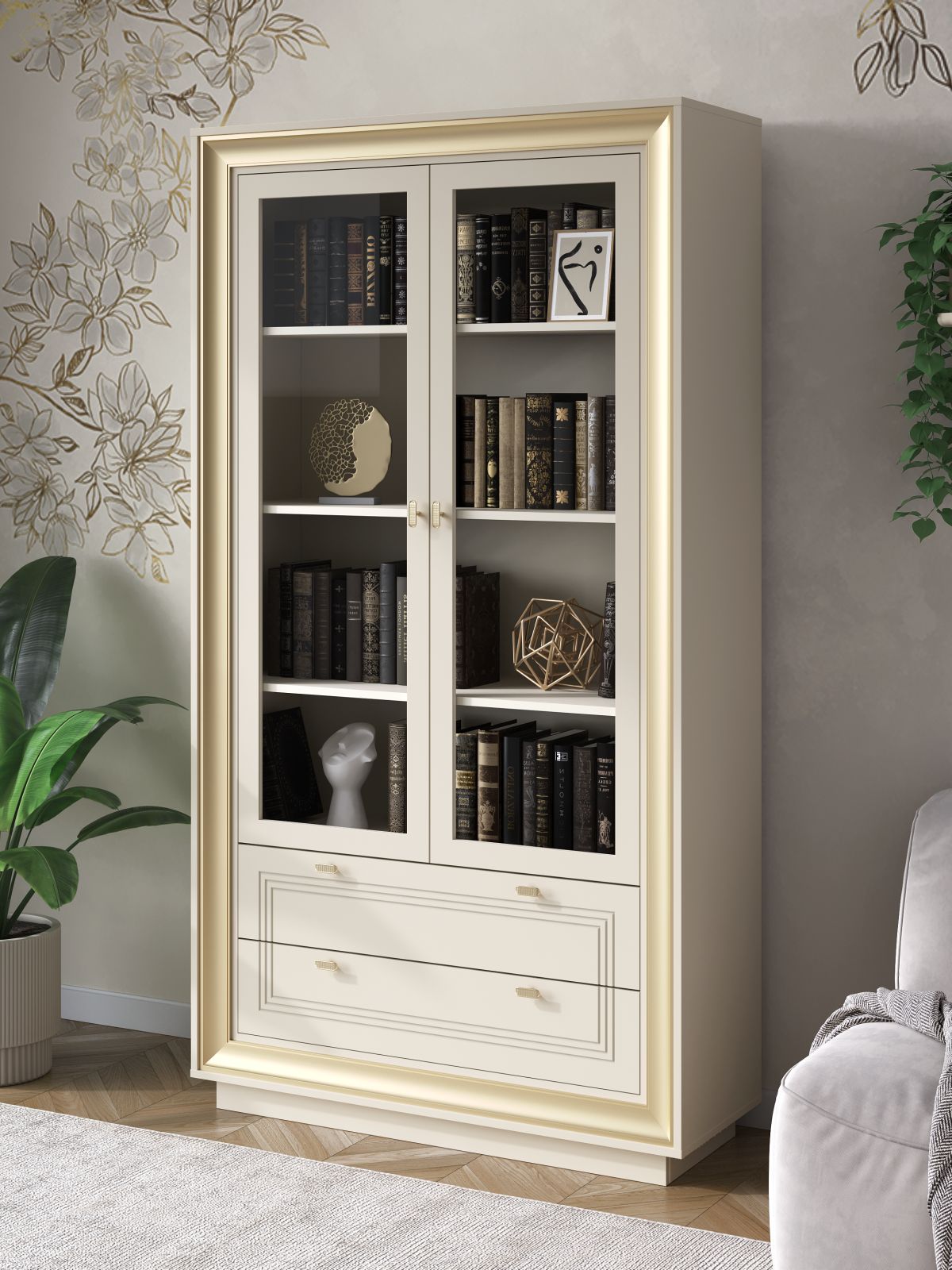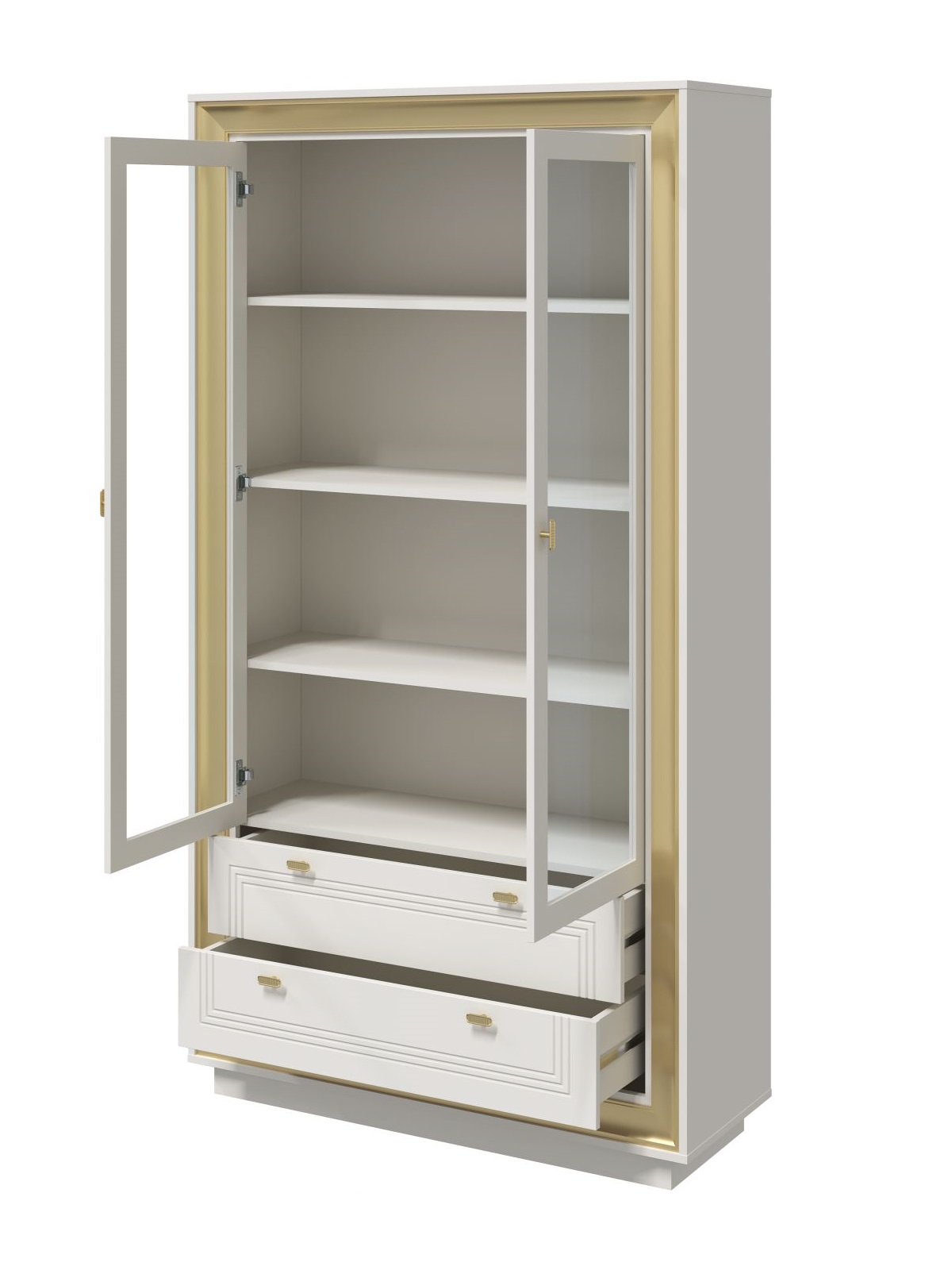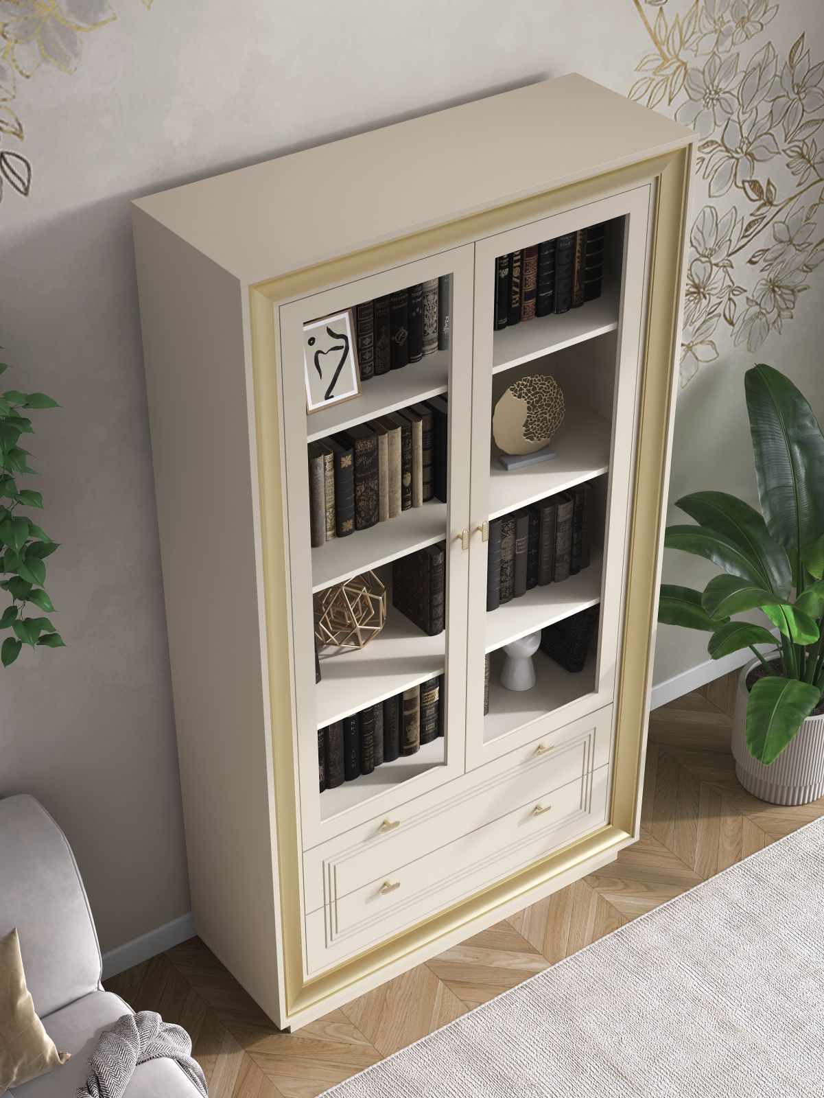 Шкаф с витриной «Прато» 2дв, зефир/миндаль