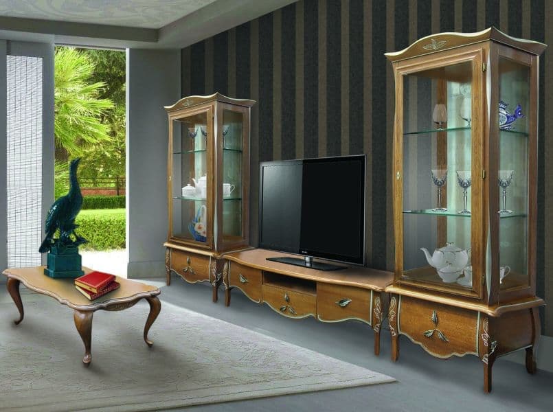 Большой вместительный шкаф с витриной из коллекции «Трио» отлично дополнит помещение, оформленное в классическом стиле. Универсальные размеры помогут легко разместить этот предмет мебели не только в большой столовой или гостиной, но также на обычной кухне.