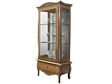 Компактный удобный шкаф с широкими стеклянными полками и красивым молдингом изготовлен из массива дуба. Тонкая резьба ручной работы, а также искусственно состаренные ручки, выполненные в виде изящно изогнутых листьев, отлично дополняет необычный эко стиль модели.