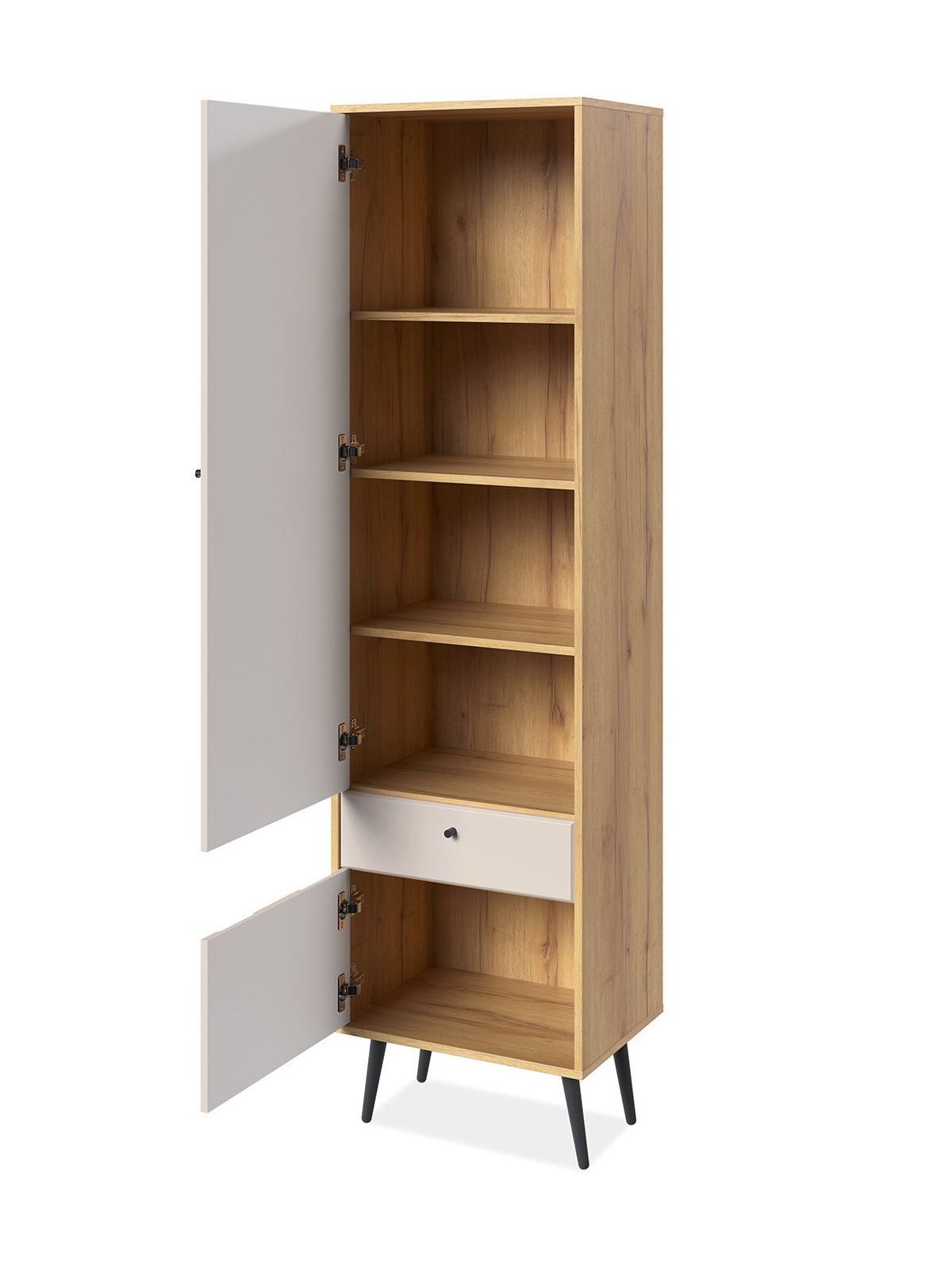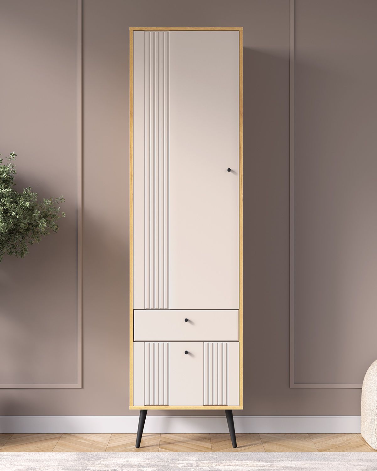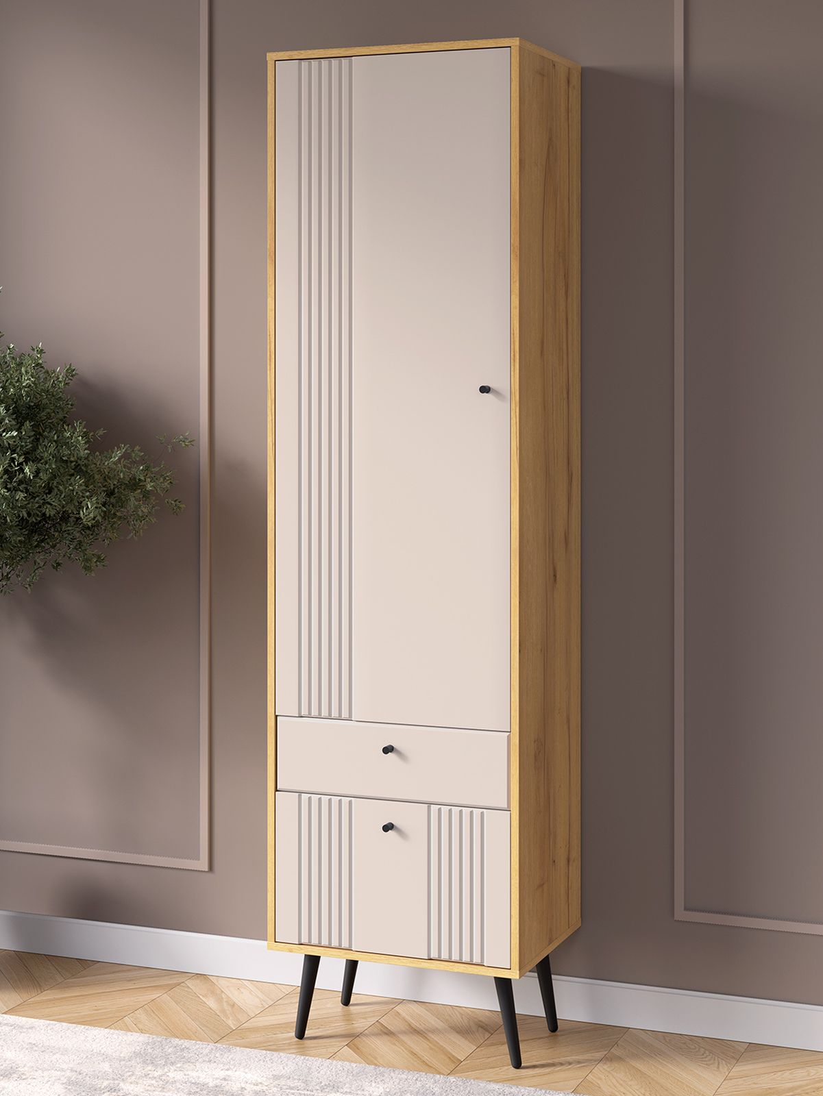Если вы хотите оформить гостиную в популярном скандинавском стиле, вы можете купить шкаф-пенал Вега Саксония. Шкаф в гостиную - это вместительный однодверный, распашной шкаф. Оттенок натуральной древесины "Дуб крафт золотой " в сочетании с серо-зеленым цветом создадут атмосферу спокойствия и надежности в доме.