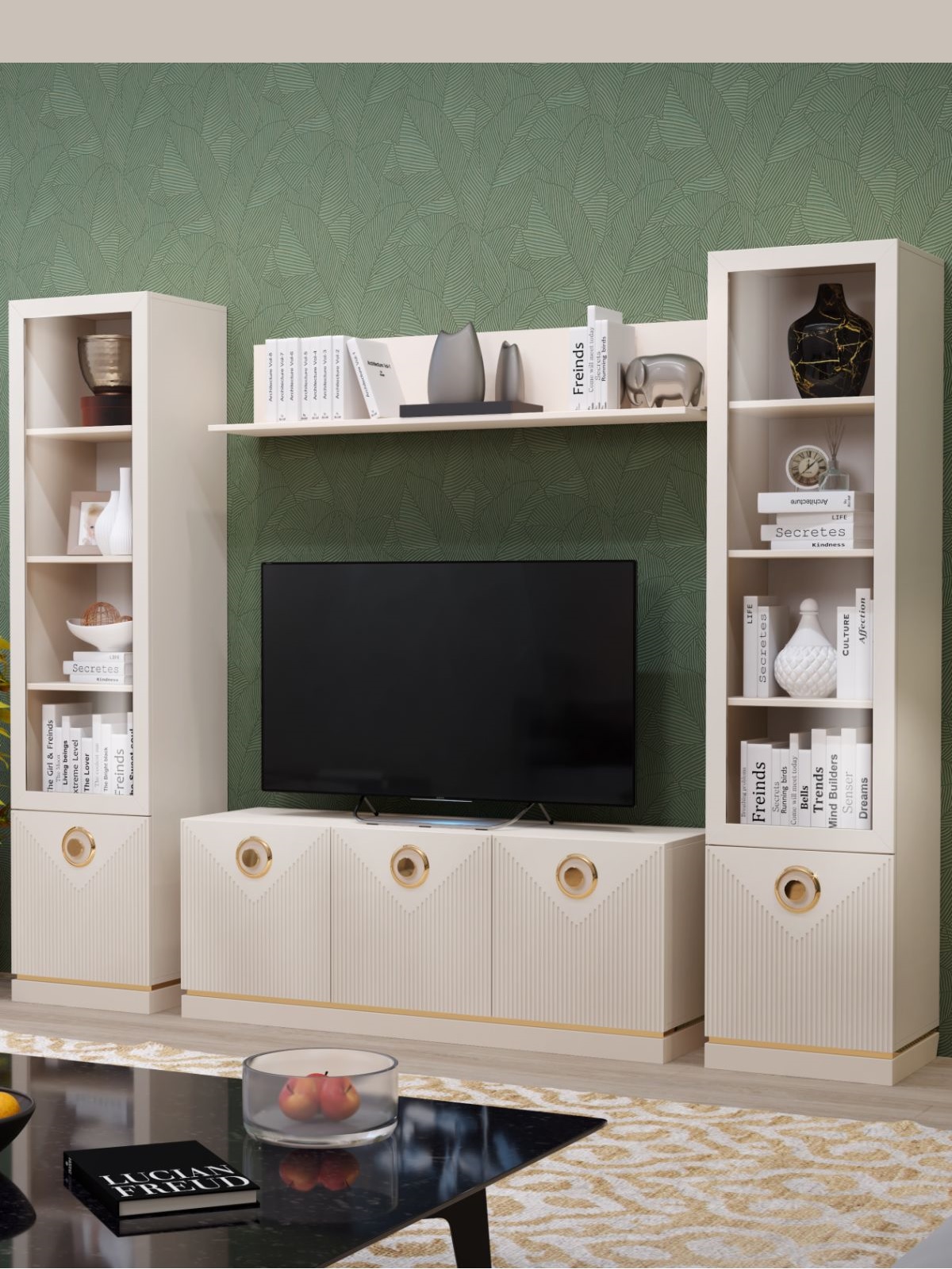 Преимущества витрины Капри: - конструкция модуля предполагает возможность закрытого и открытого хранения, за стеклодверью предусмотрены три полки, где можно поместить красивые сувениры, книги и фото, а в нижней части закрытое отделение с дверкой; - петли дверок имеют доводчик для плавного движения и закрывания; - мебель безопасна для дома благодаря экологичным материалам , таким как МДФ и ЛДСП класса эмиссии Е1.