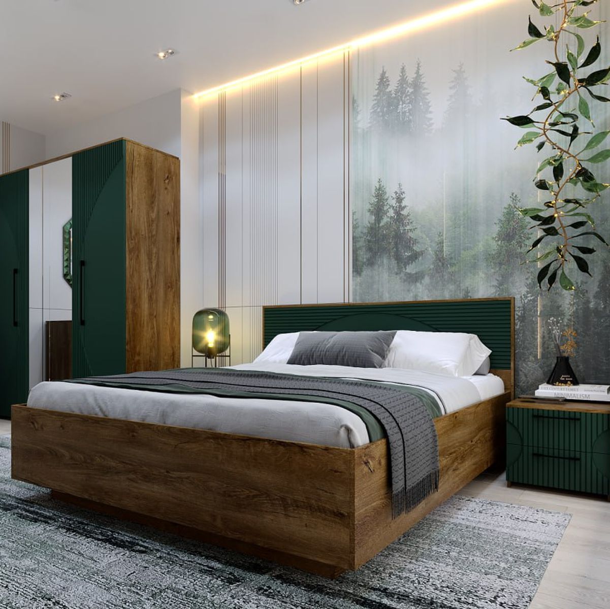 Спальня «Монтале» КМК 0966, дуб канзас/зеленый матовый