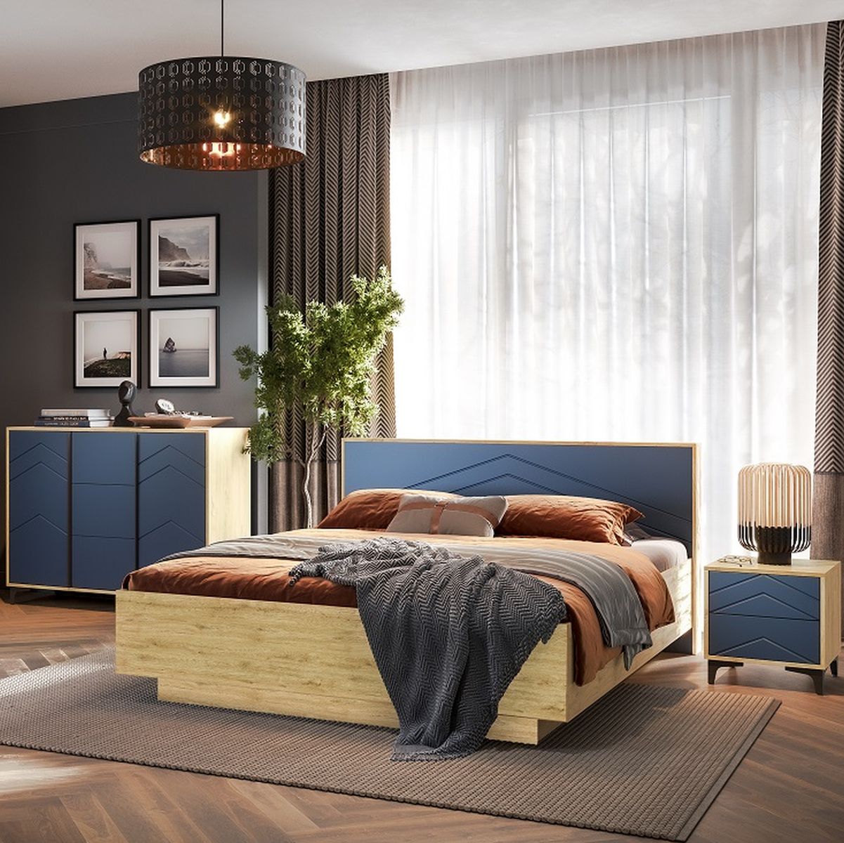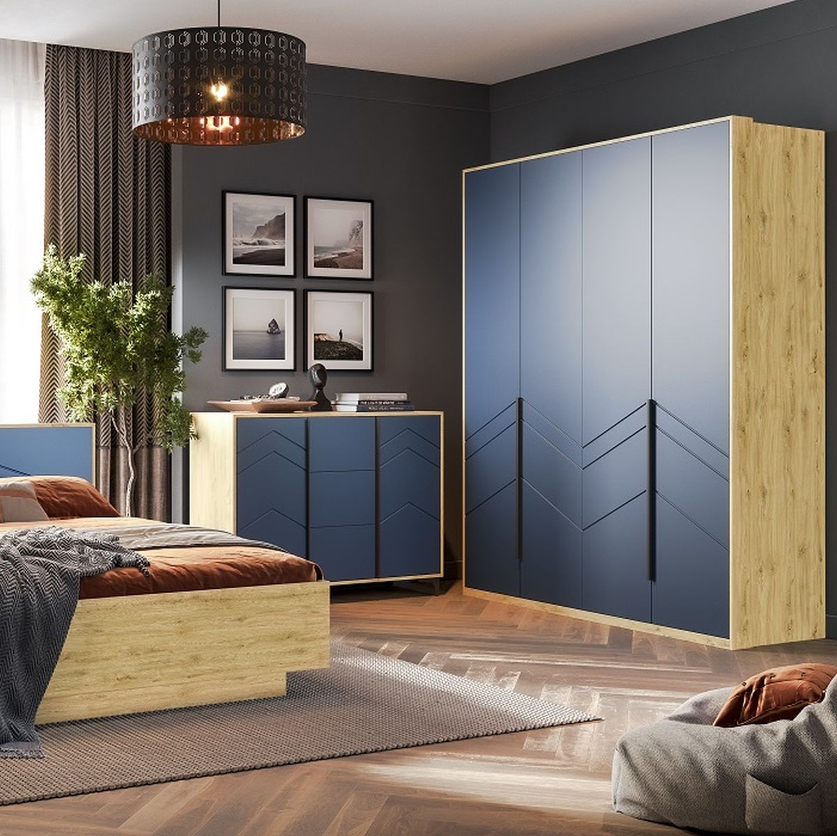 Спальня «Тиана» КМК 0967, дуб наварра/синий матовый