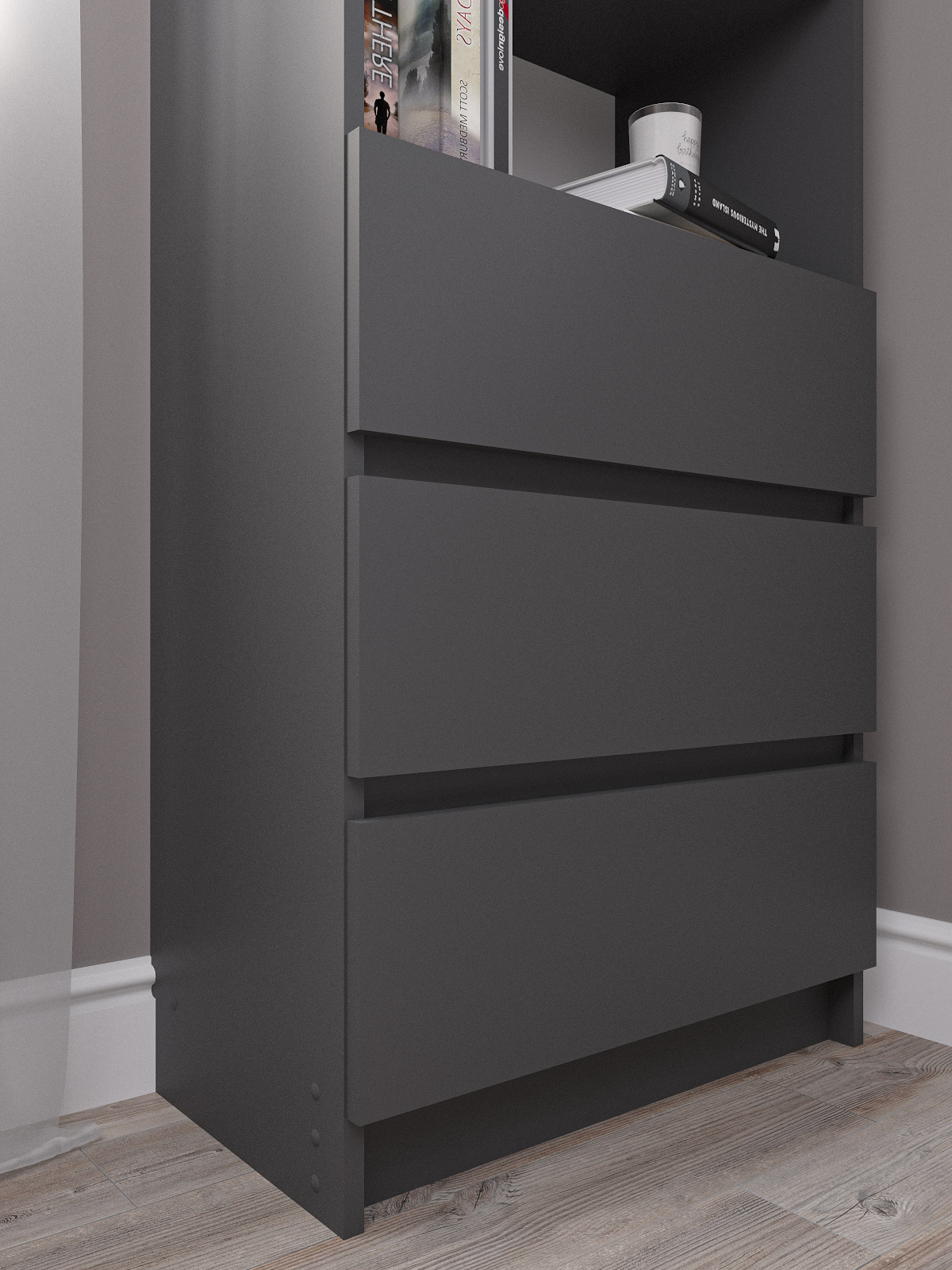 Стеллаж напольный Мори - это идеальное решение для хранения одежды и других вещей в вашем доме. Этот шкаф имеет 3 ящика и 2 полки, которые позволяют вам максимально эффективно использовать пространство. Он изготовлен из ЛДСП и покрыт ламинированным материалом, что обеспечивает долгий срок службы и высокую прочность конструкции.