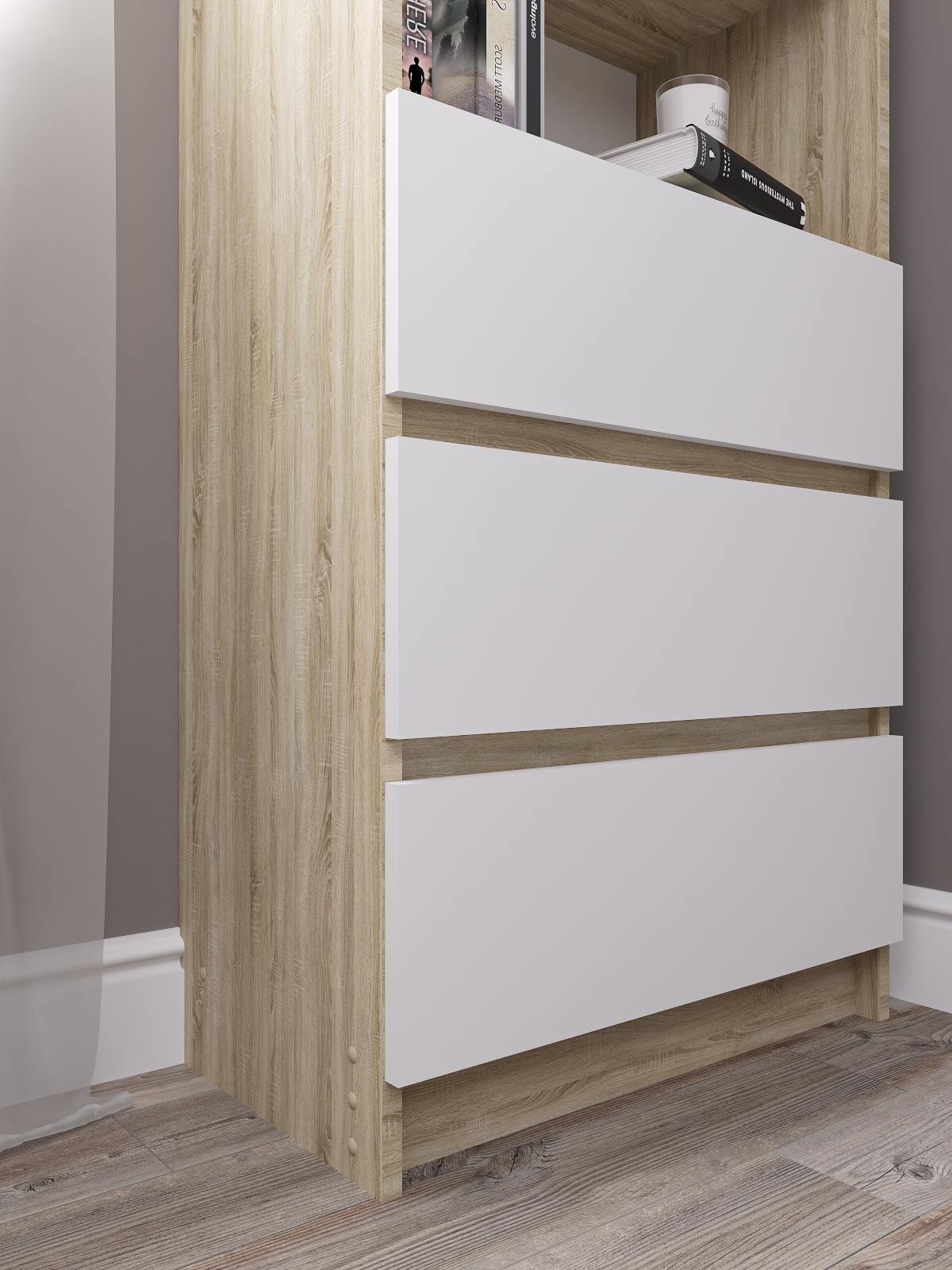 Стеллаж напольный Мори - это идеальное решение для хранения одежды и других вещей в вашем доме. Этот шкаф имеет 3 ящика и 2 полки, которые позволяют вам максимально эффективно использовать пространство. Он изготовлен из ЛДСП и покрыт ламинированным материалом, что обеспечивает долгий срок службы и высокую прочность конструкции.