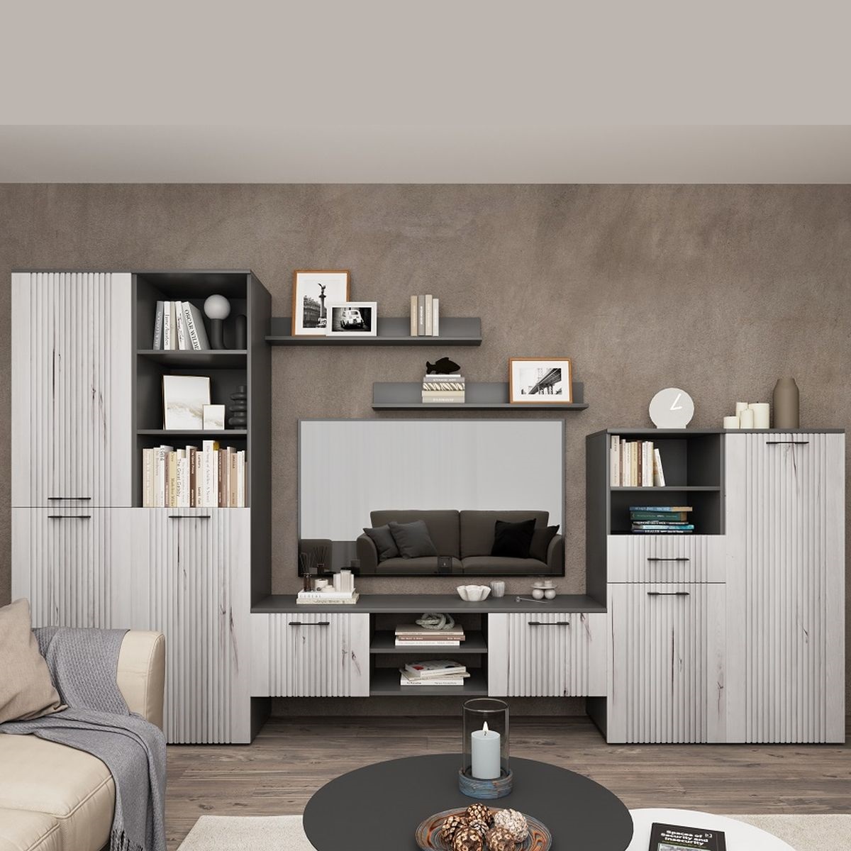 Стенка «Монреаль» КМК 0986, антрацит/дуб канадский арктик