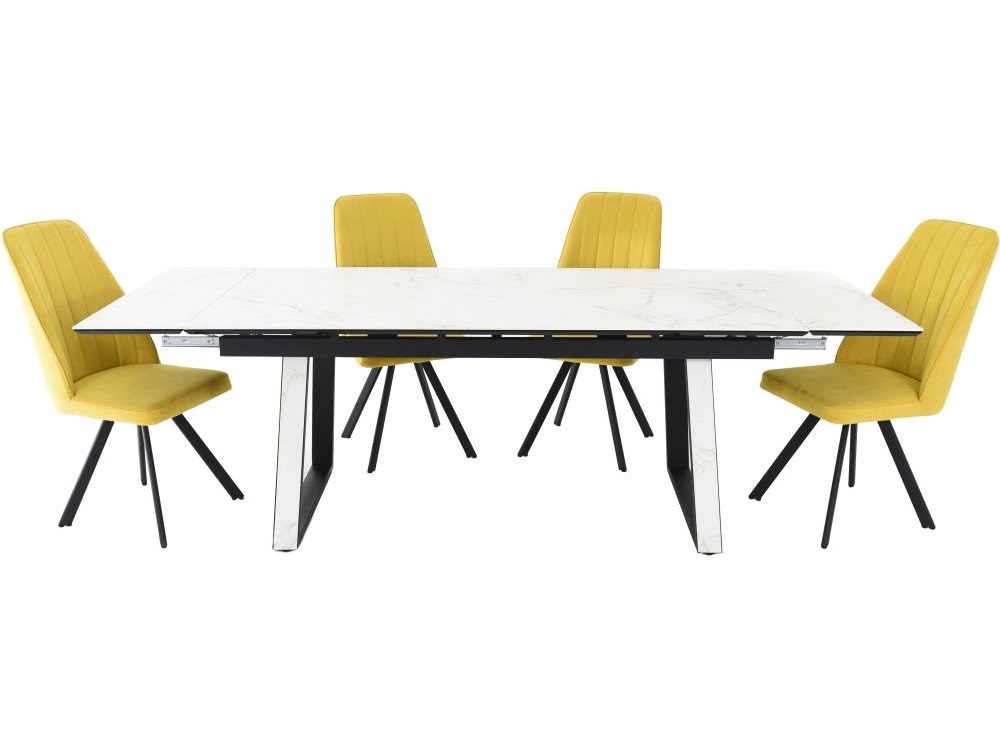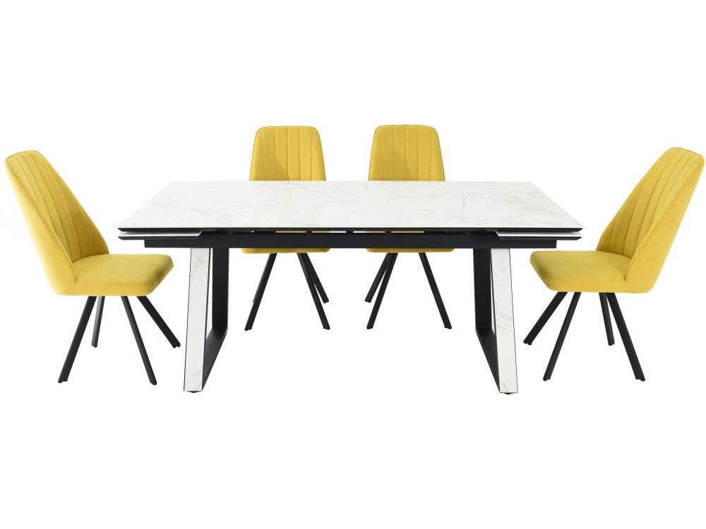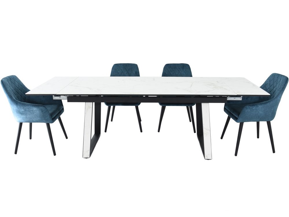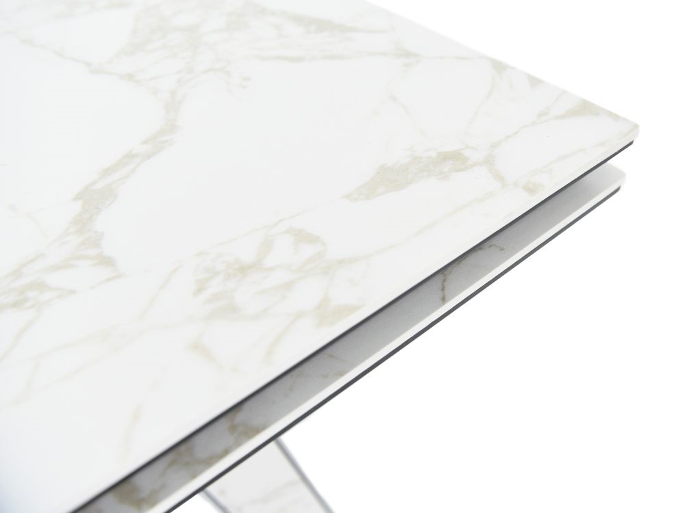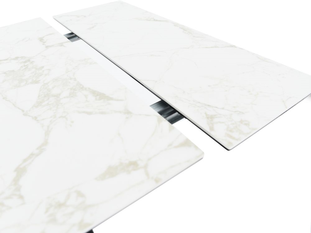 Кухонный стол «Monaco» Quadro, со столешницей из искусственного камня, материал - керамогранит Calcata vaglioro, на черных металлических опорах. Отличительной чертой этого стола являются боковые вставки для раскладки стола. Такой механизм успешно себя зарекомендовал и пользуется постоянным спросом у наших покупателей. На вставках опор, также используется керамогранит. Стоит отметить еще одну особенность стола «Monaco» Quadro — это выбор, как со столешницей из керамогранита, так и покрытия из закаленного, матового стекла OPTI. На столы с керамикой, между столешницей и вставкой, приклеивается силиконовая полоска, она необходима для сохранения целостности керамики при трансформации стола. Ее необходимо оставить!