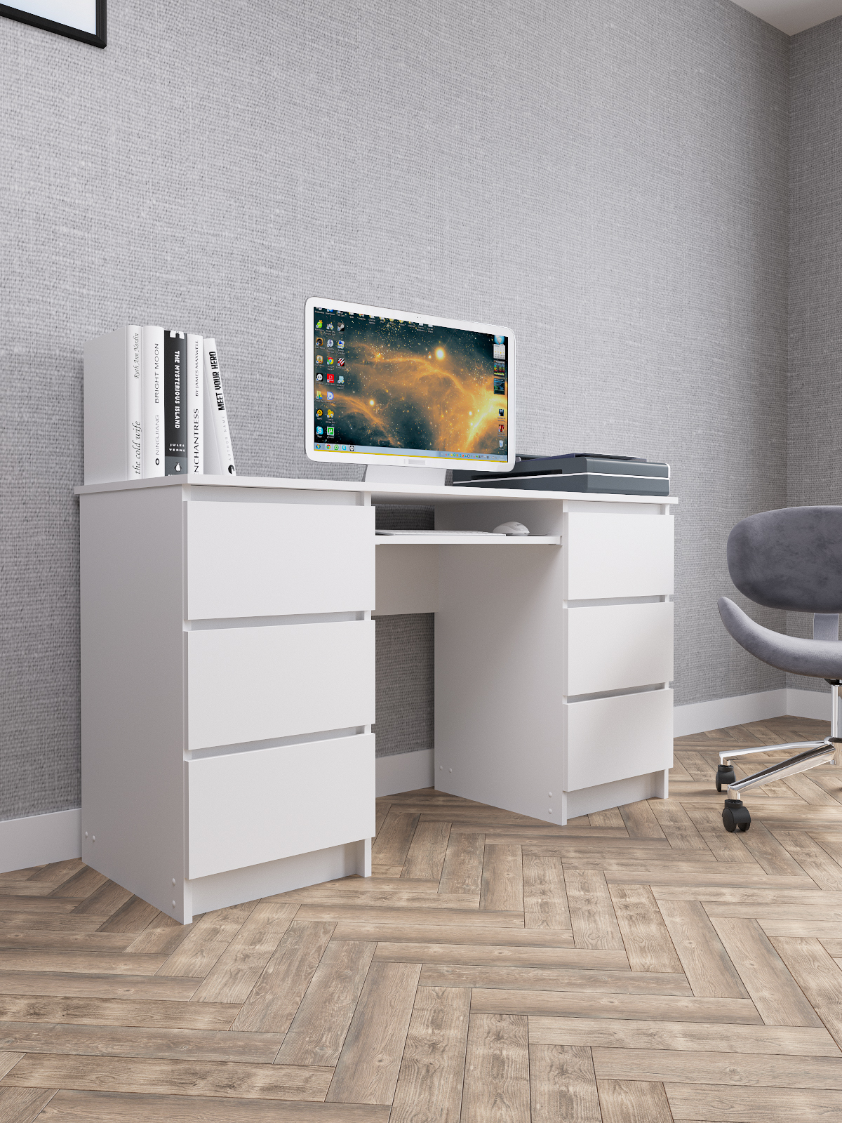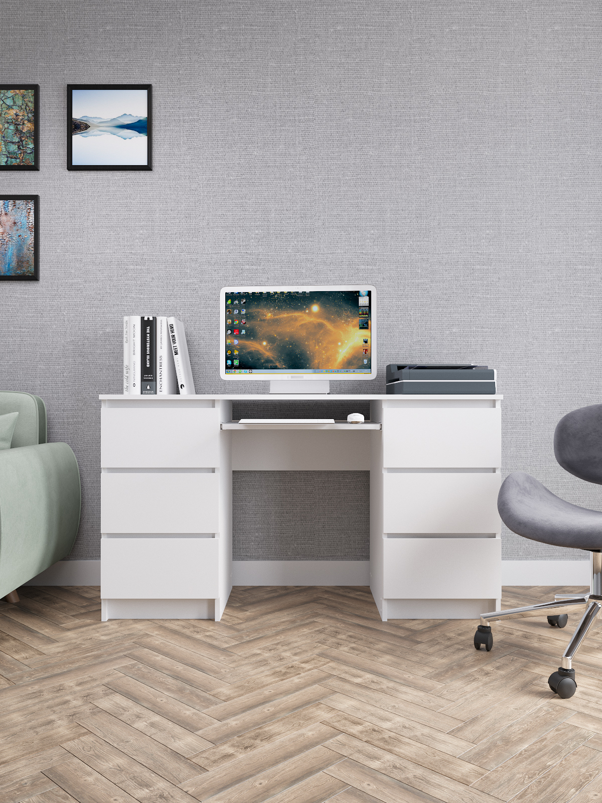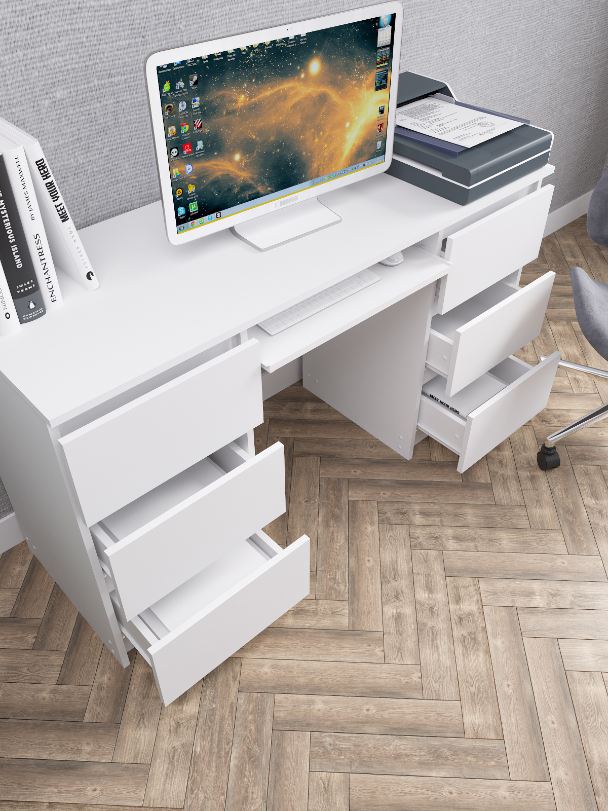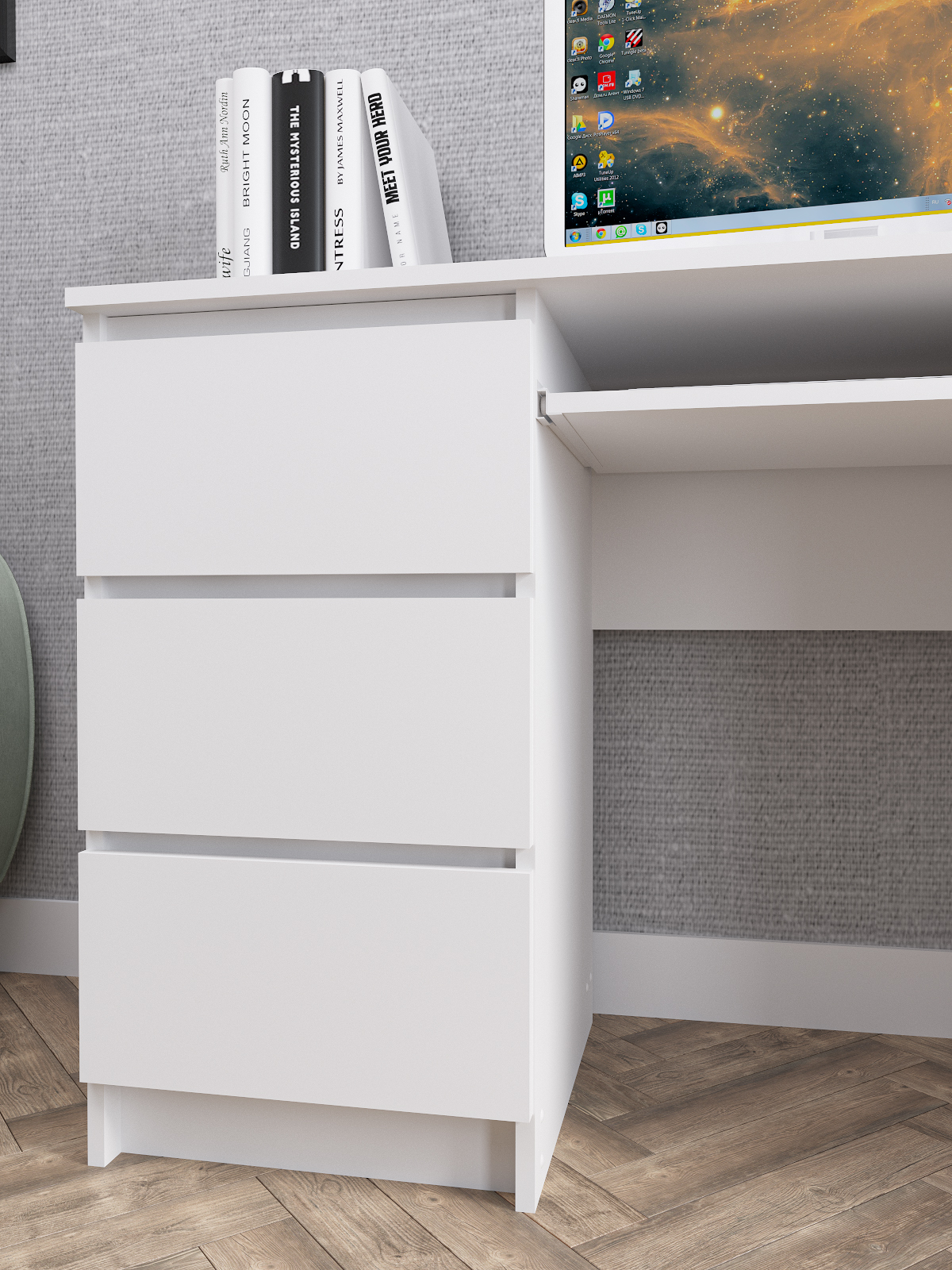 Стол письменный Мори изготовлен из ЛДСП, что обеспечивает долгий срок службы и высокую прочность конструкции. Кроме того, он имеет ящик для хранения необходимых вещей, таких как книги, бумаги и другие принадлежности для учебы.
