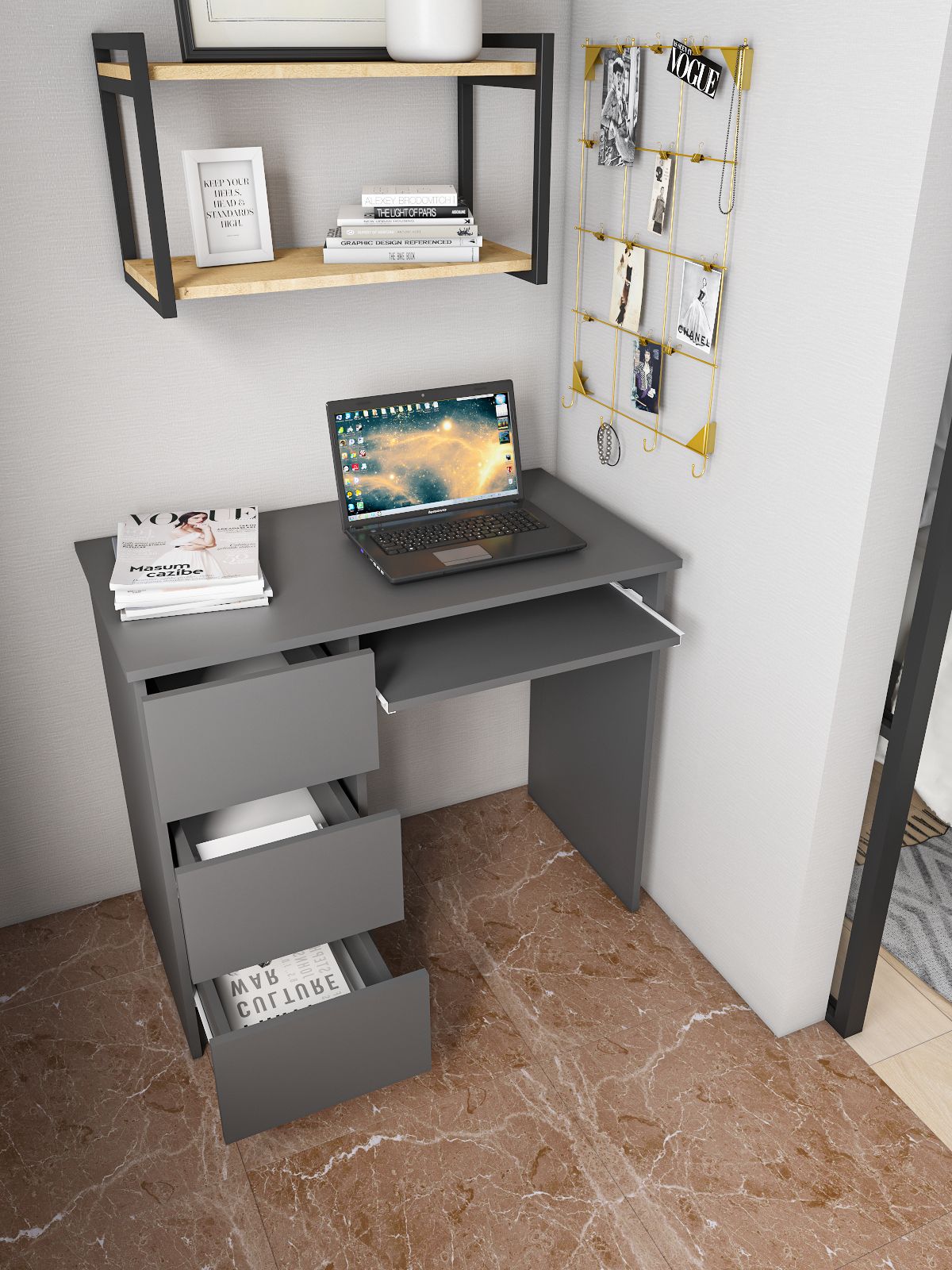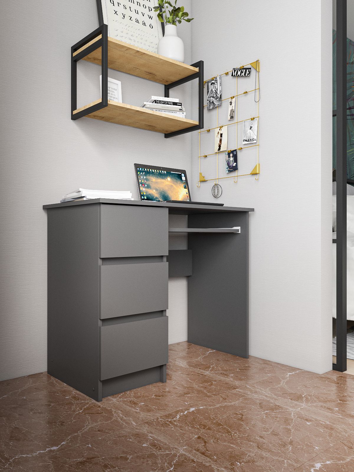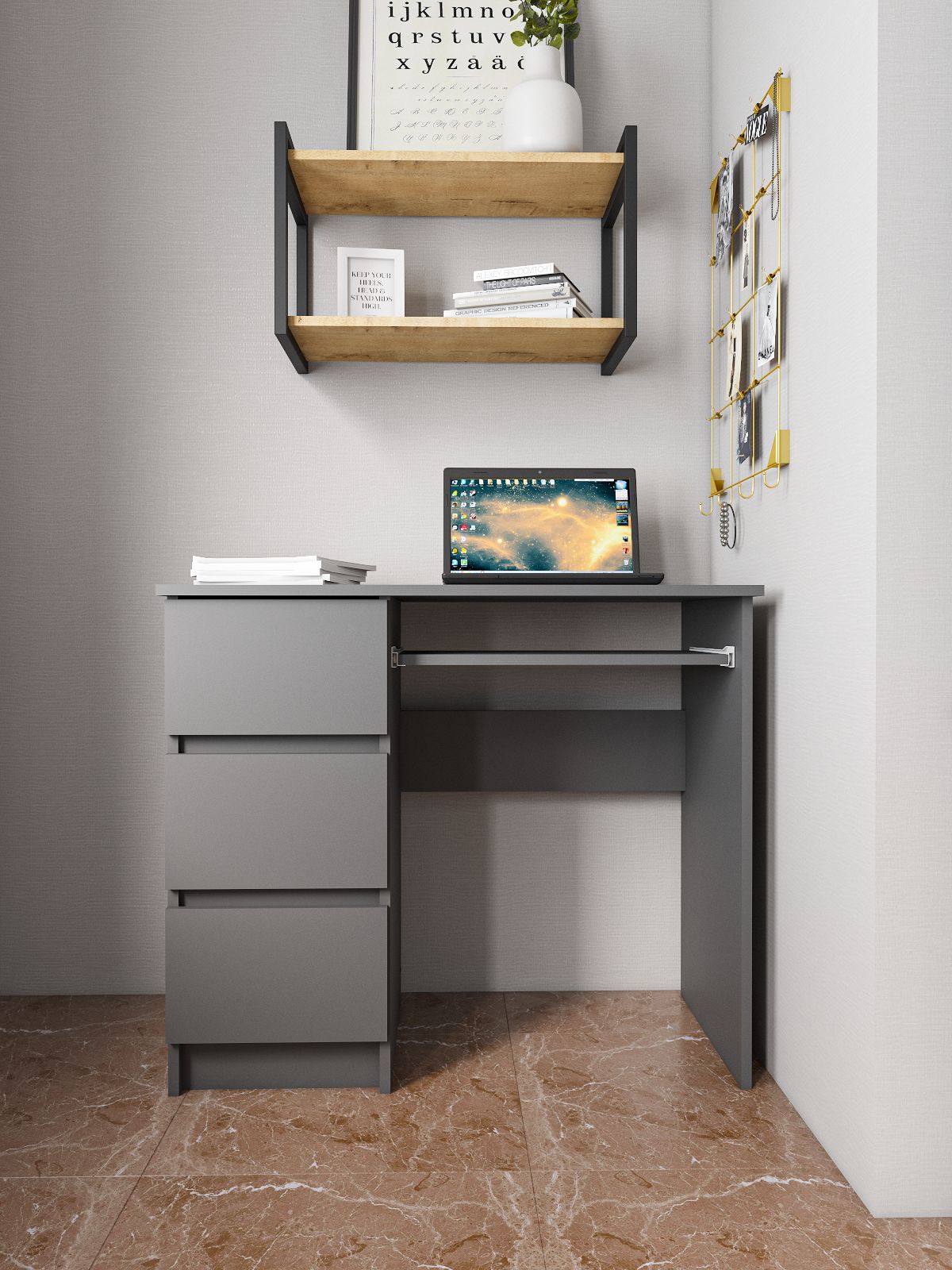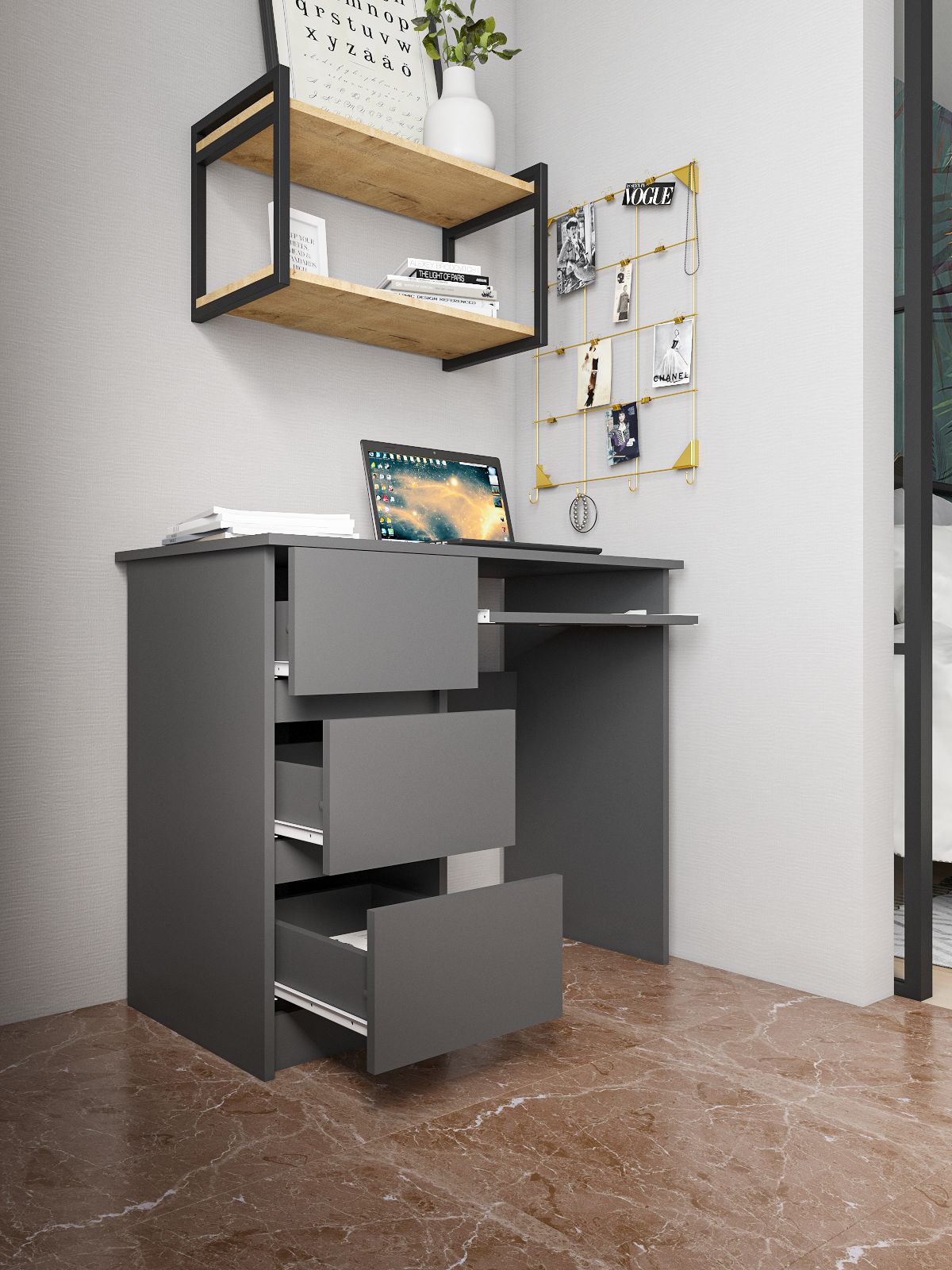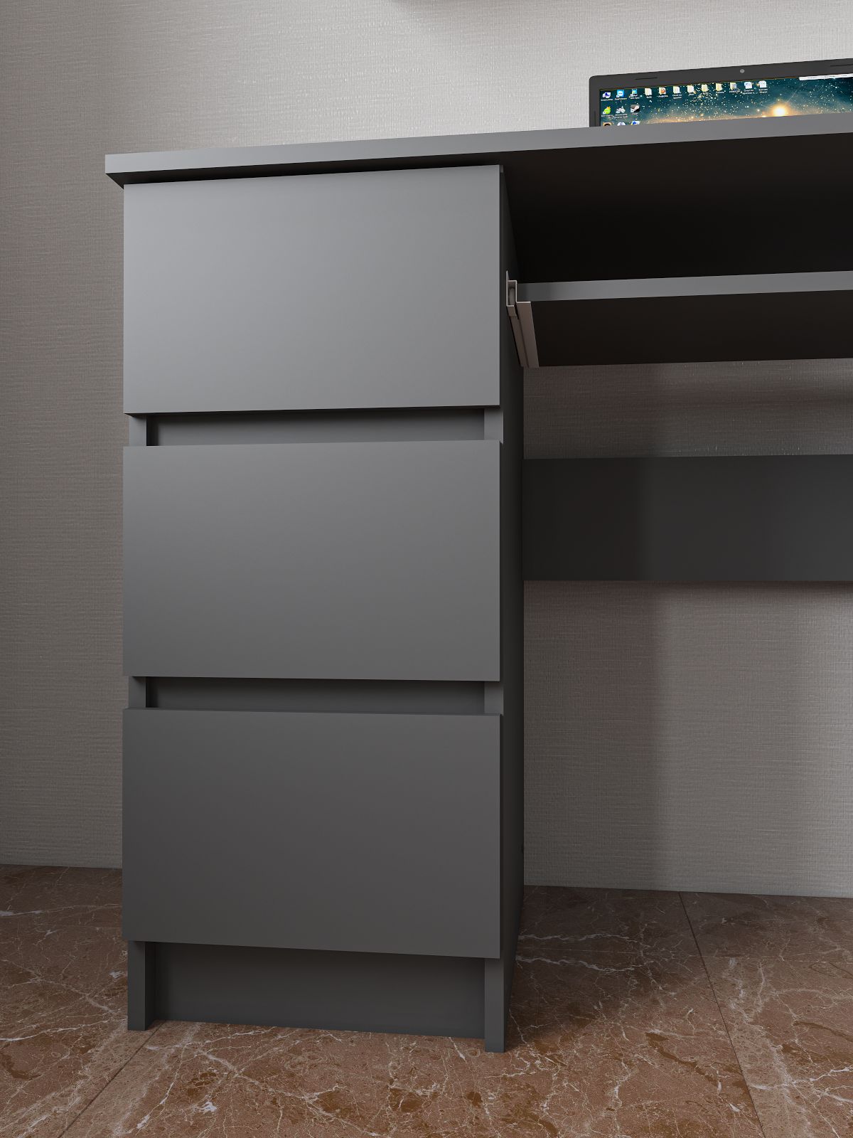 Стол письменный Мори изготовлен из ЛДСП, что обеспечивает долгий срок службы и высокую прочность конструкции. Кроме того, он имеет ящики для хранения необходимых вещей, таких как книги, бумаги и другие принадлежности для учебы.