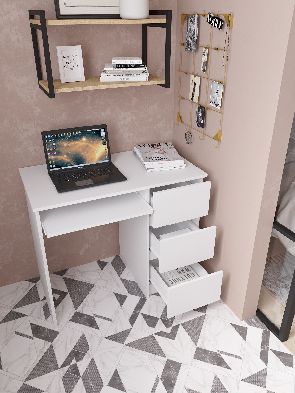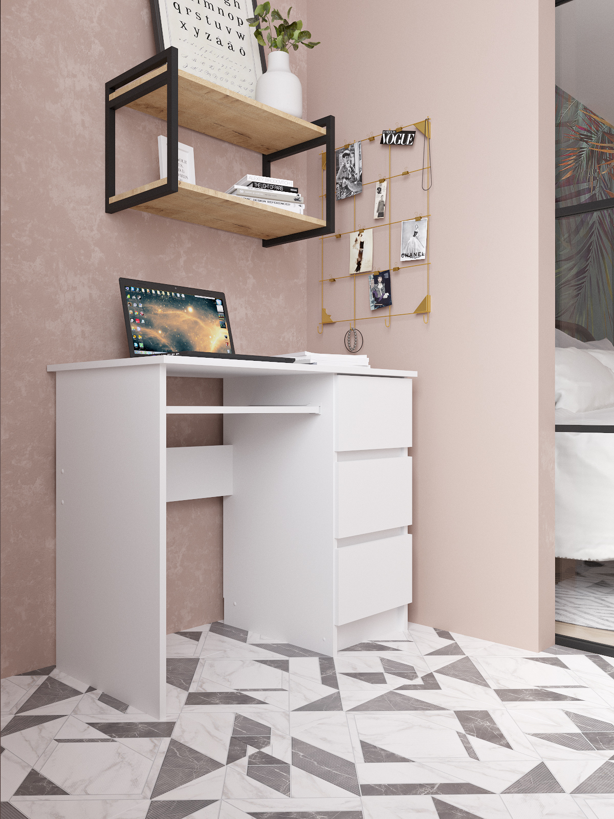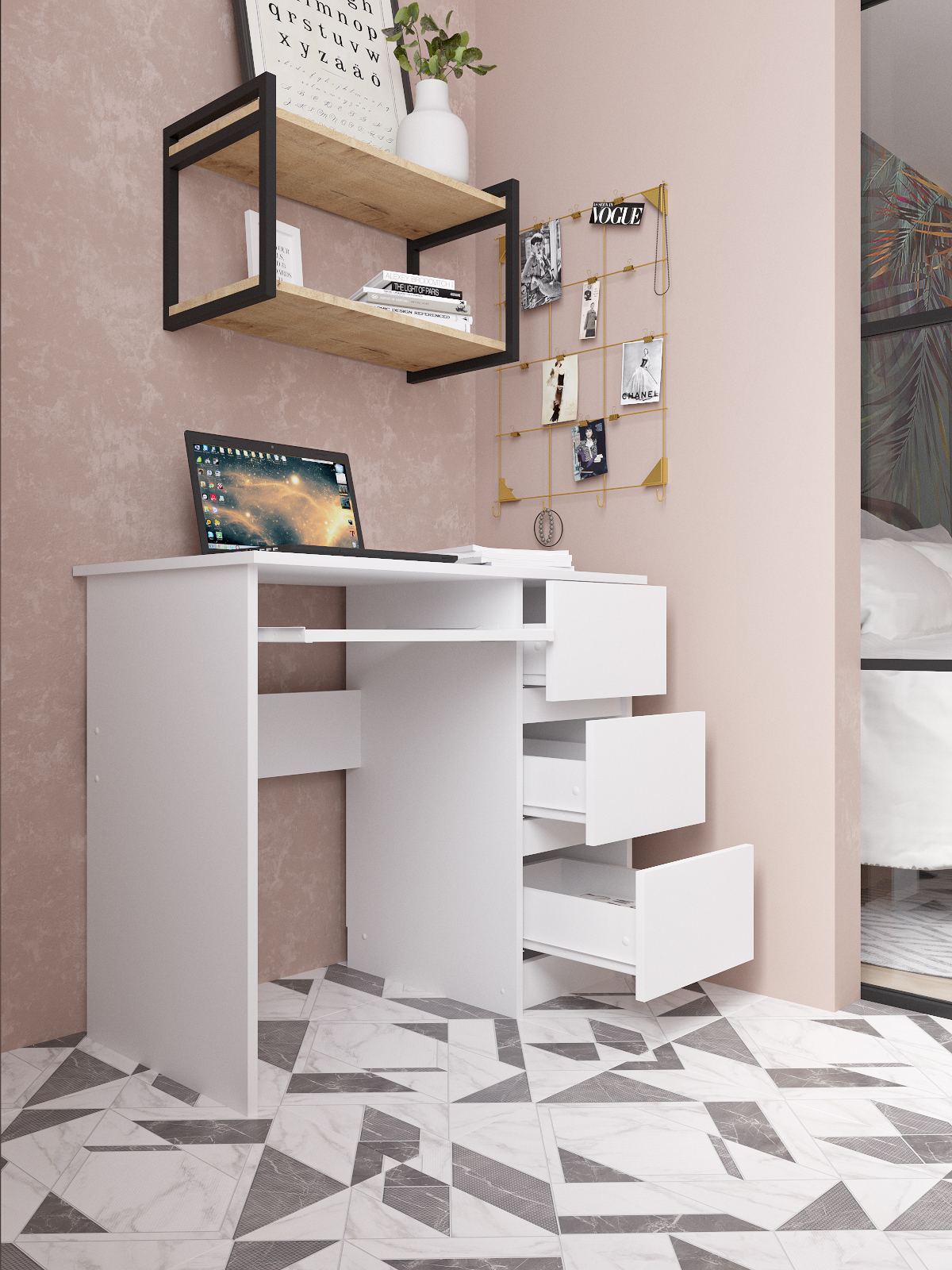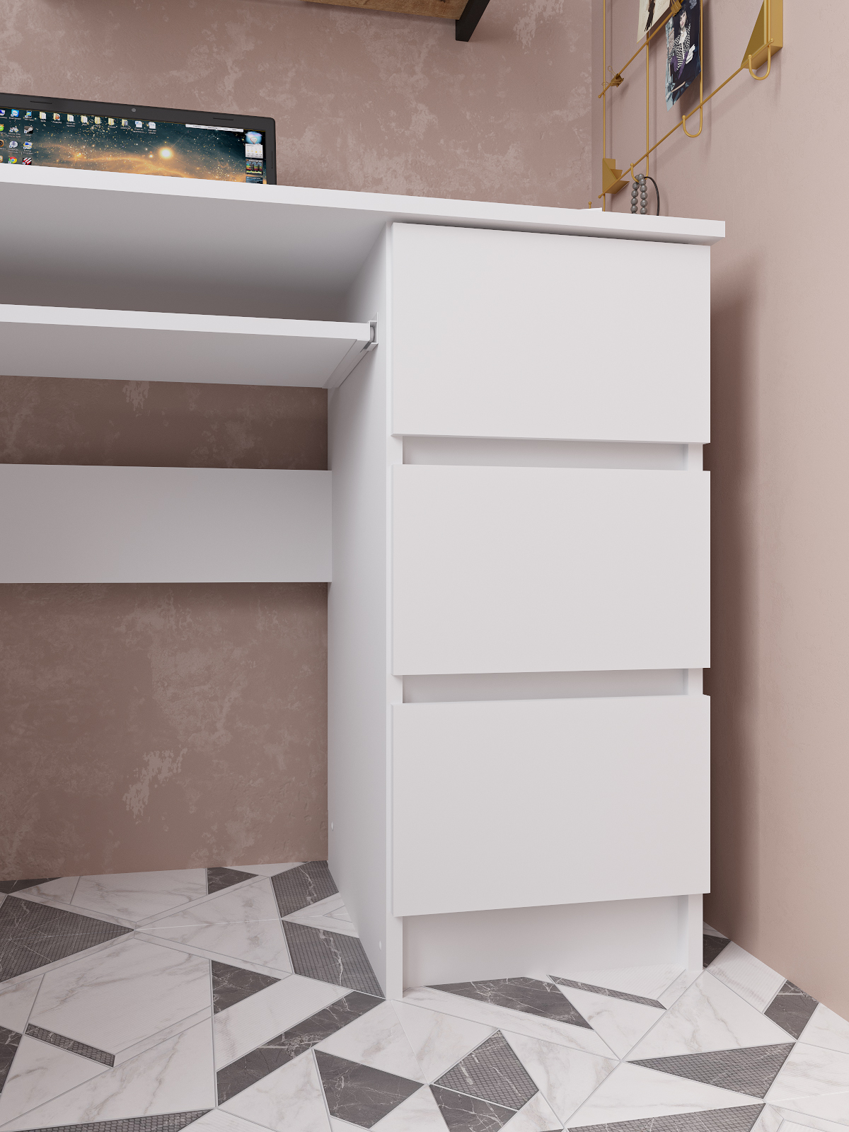 Стол письменный Мори изготовлен из ЛДСП, что обеспечивает долгий срок службы и высокую прочность конструкции. Кроме того, он имеет ящики для хранения необходимых вещей, таких как книги, бумаги и другие принадлежности для учебы.