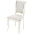 Деревянный стул «Кабриоль», в ткани Атина 160-1, в крашении Тон 9 (Эмаль белая). Материал изготовления каркаса стула: массив березы с окраской различных тонов, в том числе и в сочетании с патиной (искусственно состаренное покрытие дерева). Варианты модели стула предусматривают изготовление из различных тканей: шелка, экокожи и рогожки, а так же с жестким сиденьем.