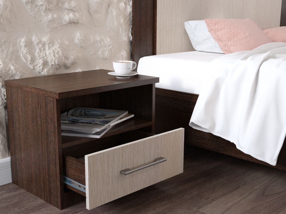 Прикроватные тумбы выполнены в стиле минимализм: строгие линии, идеальные пропорции, отсутствие декора. Все варианты цвета корпуса и фасадов подобраны в нейтральных сочетаниях, они универсальны для любого стиля интерьера, их можно сочетать со множеством ярких и насыщенных оттенков, а с помощью смены цветных текстиля и аксессуаров - полностью преображать пространство. Прикроватные тумбы с двумя ящиками на Направляющие полного выдвижения, позволяющие полностью выдвигать ящики, и выдерживающие большую нагрузку по сравнению с роликовыми направляющими.
