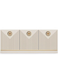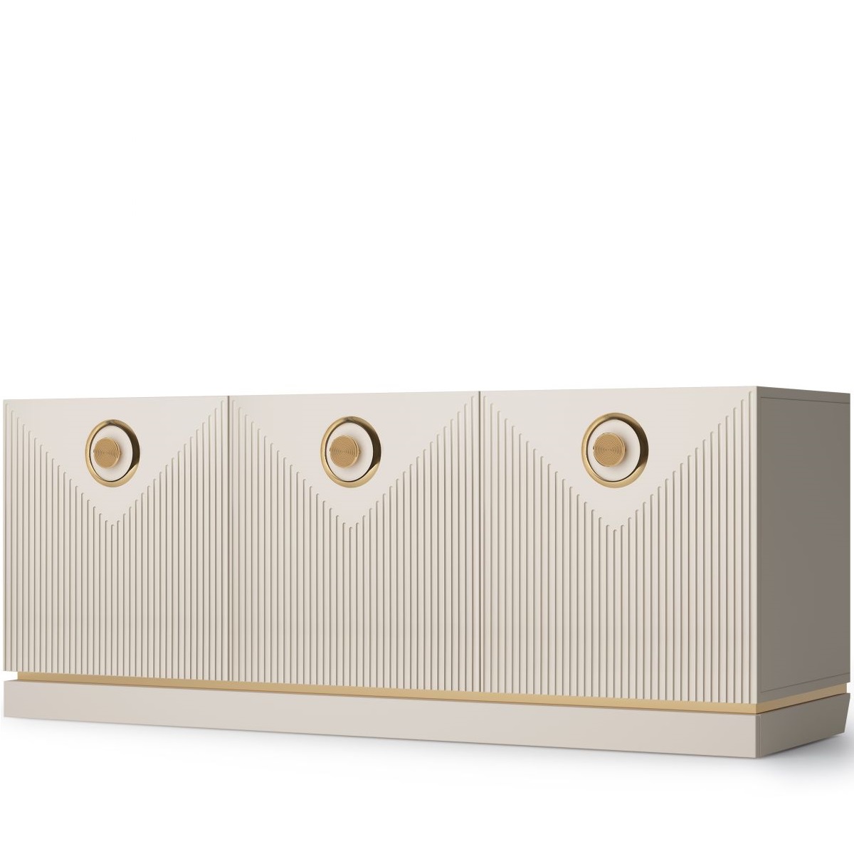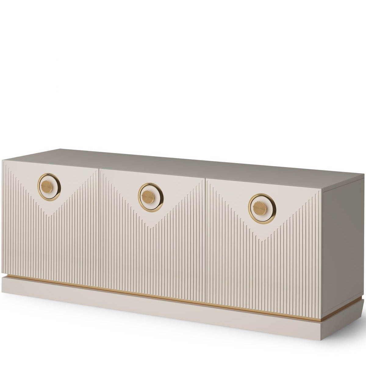 Мебель выполнена в теплом, приятном для глаз оттенке «сатин». Корпус из ЛДСП дополняют фасады из высококачественного МДФ в плёнке ПВХ с эффектом soft touch. Оригинальный дизайн мебели подчеркивают эффектные металлические ручки в цвете глянцевое золото, золотая кромка, разделяющая корпус и цоколь, а также фрезеровка фасадов в виде параллельных тонких полос.
