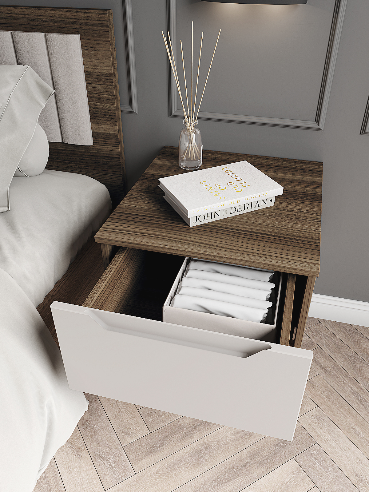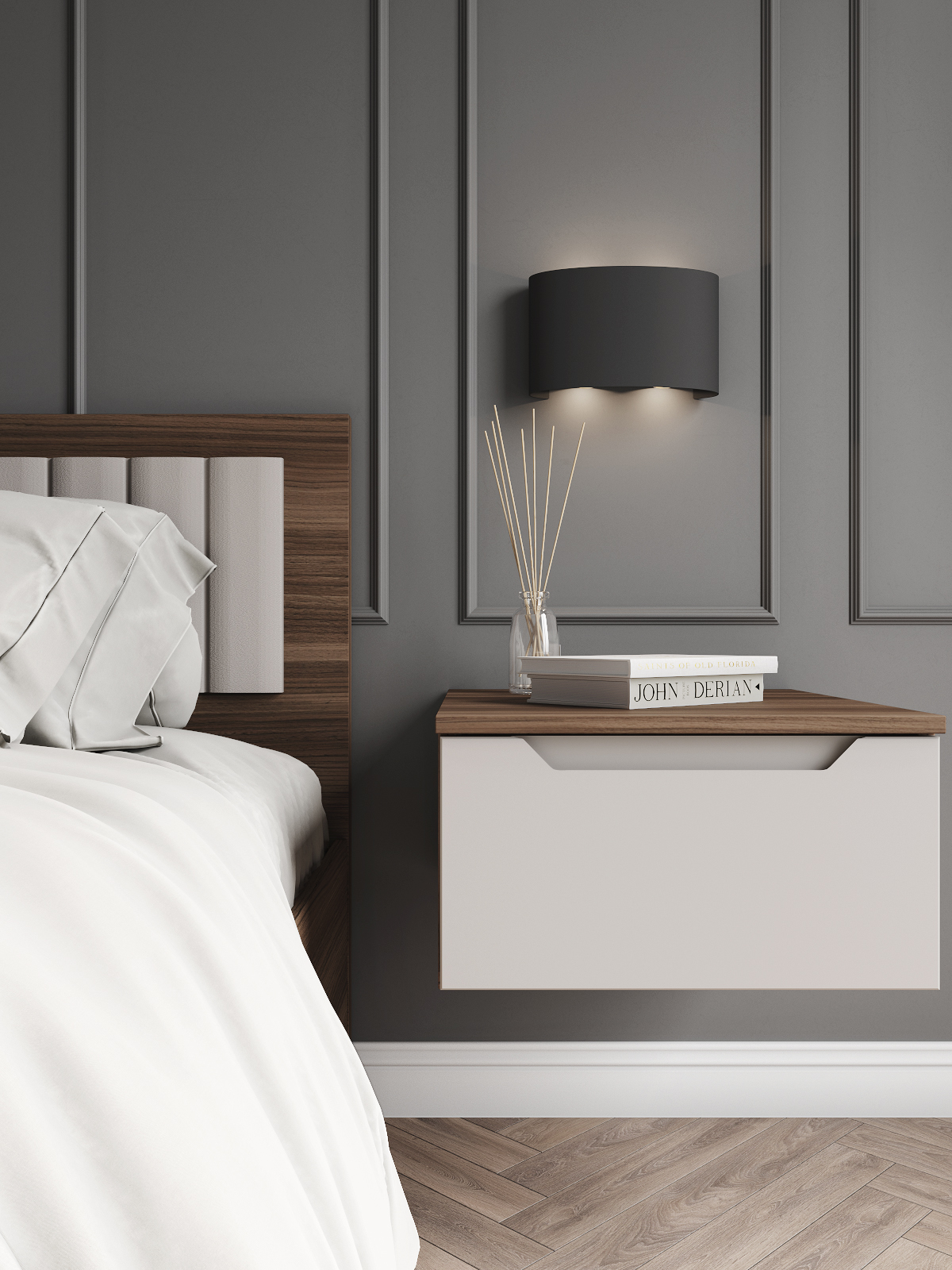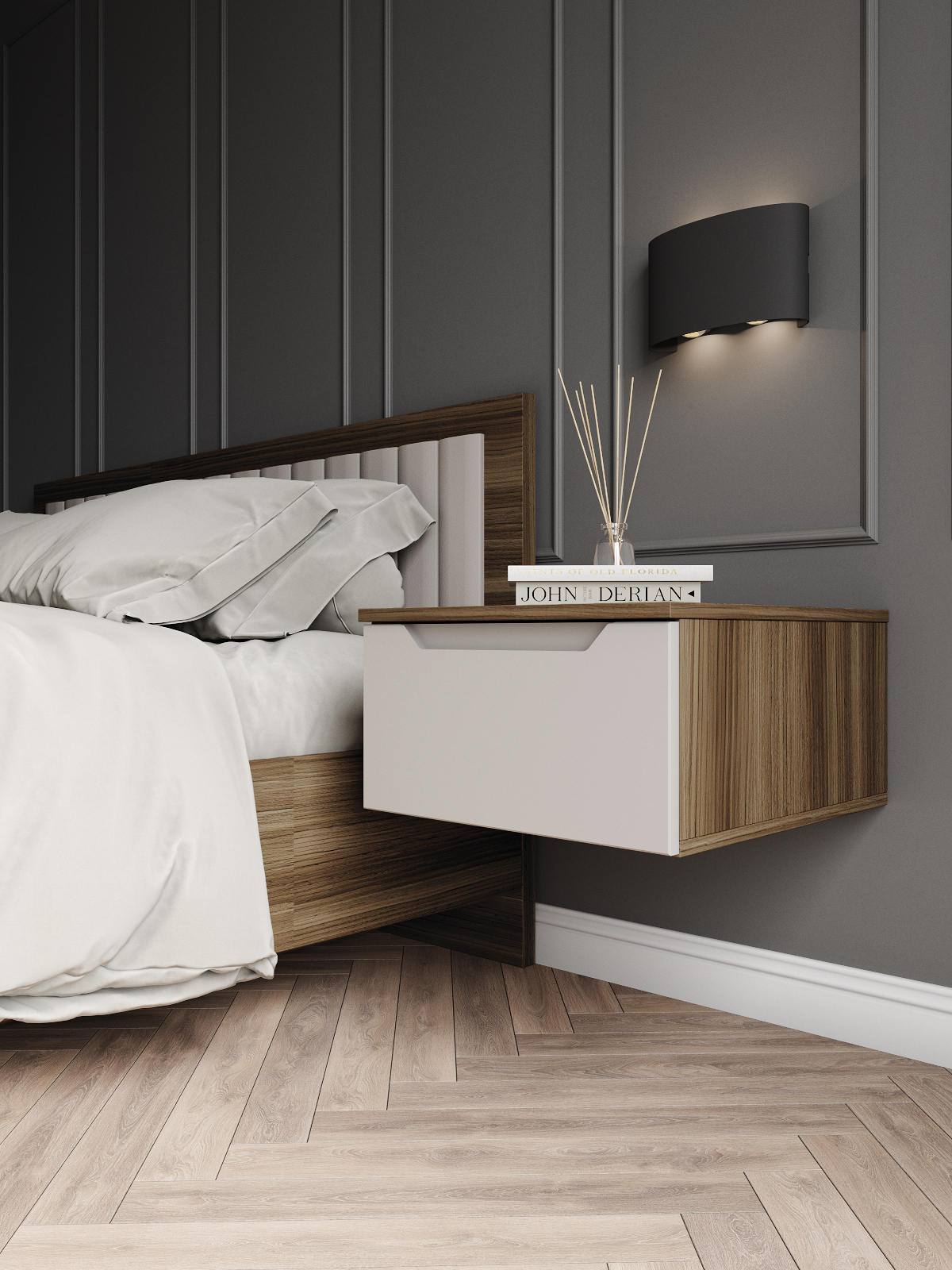 Тумба прикроватная «Роза» — это элемент модульной системы, предназначенный для установки рядом с кроватью в спальне. Тумба прикроватная имеет подвесное крепление и скрытую фурнитуру, что позволяет сохранить эстетический вид комнаты.