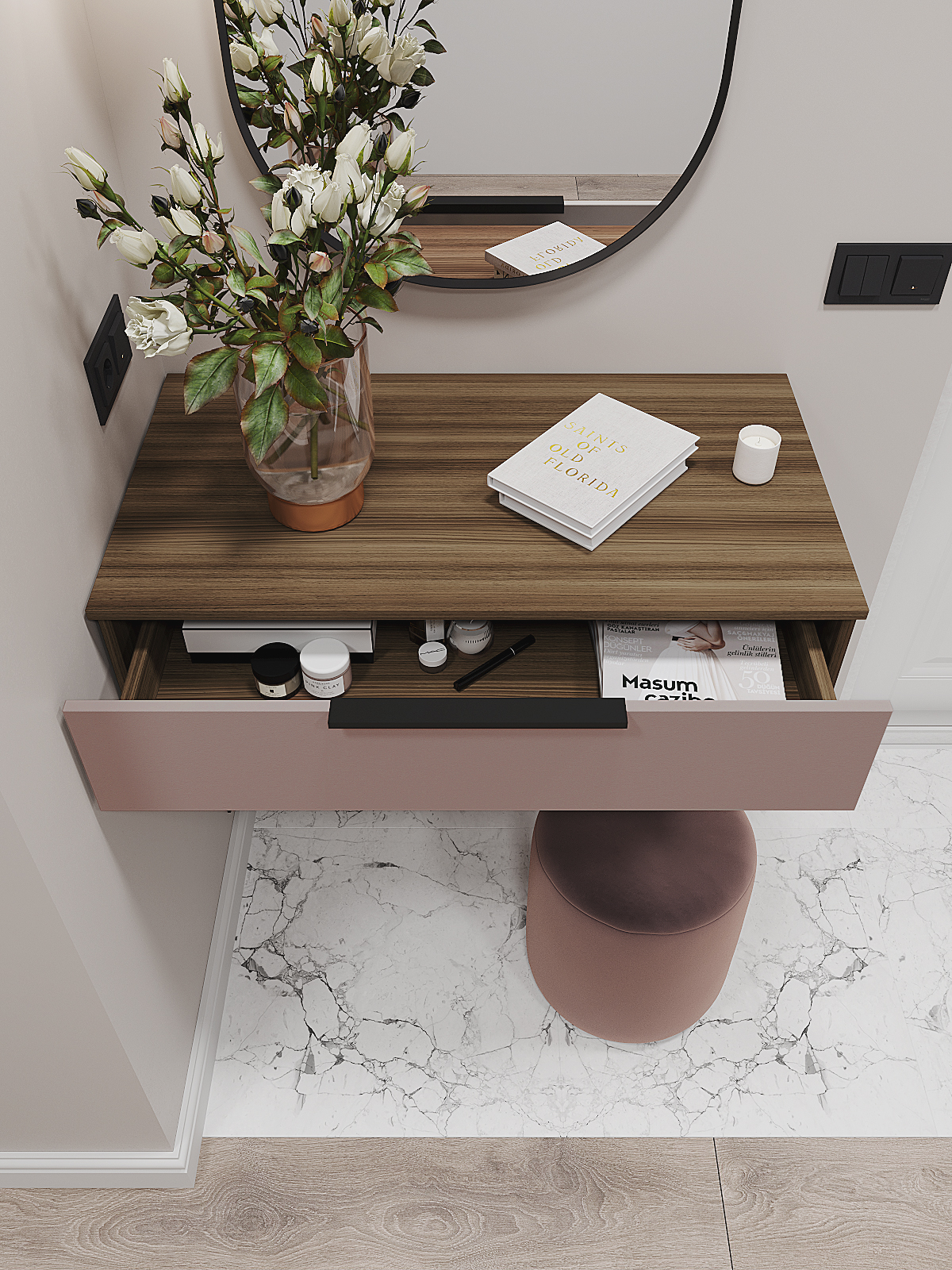 Подвесная тумба «Роза» может использоваться в качестве туалетного столика, где можно хранить косметику, лекарства и другие необходимые мелочи. Кроме того, благодаря своему компактному размеру, тумбу можно использовать в качестве ТВ-тумбы или как стеллаж для книг и декоративных предметов. Богатый выбор оттенков дает возможность выбрать модуль в соответствии с любым интерьером и создать уютную и стильную обстановку в комнате.