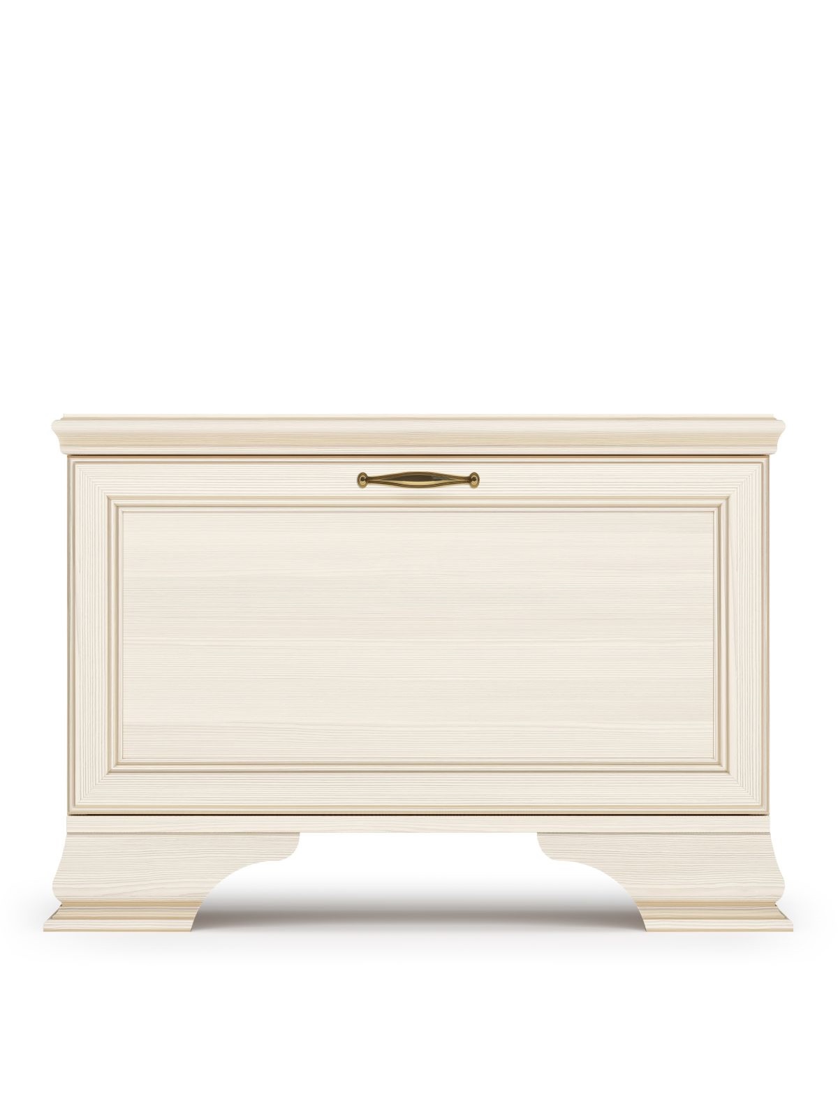 Теплый оттенок ЛДСП «бодега белый» сочетается практически с любым цветом стен и наполнит дом атмосферой уюта и комфорта. Классический стиль изделия подчеркивают декоративные профили и опоры, а также золотая патина и изысканная лицевая фурнитура.