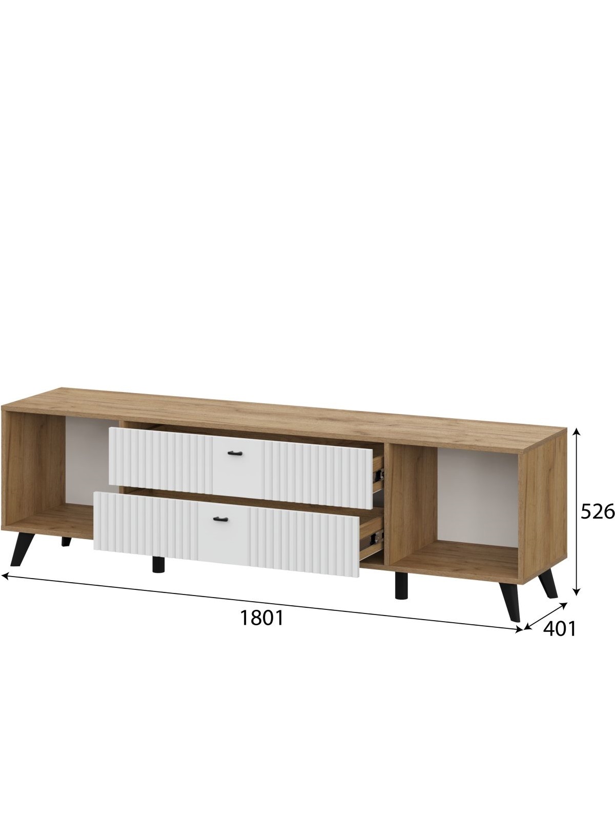 Тумба ТВ «Милан» с ящиками, дуб золотой/белый матовый
