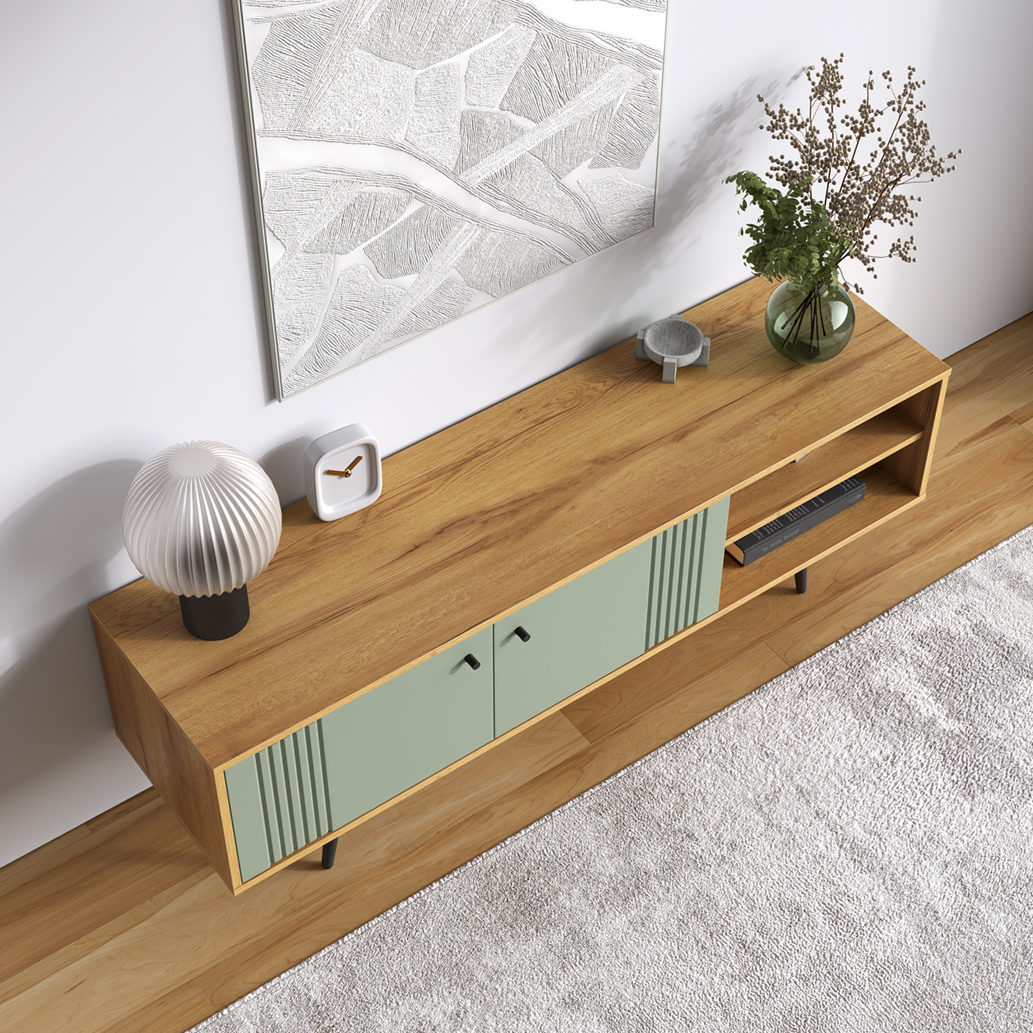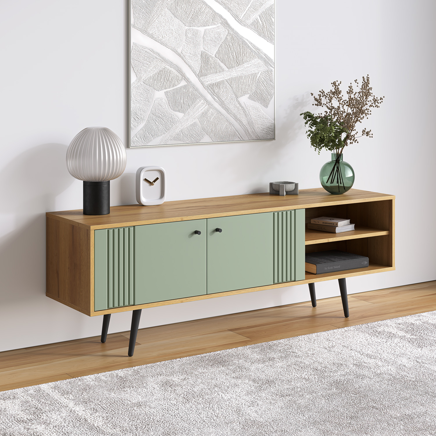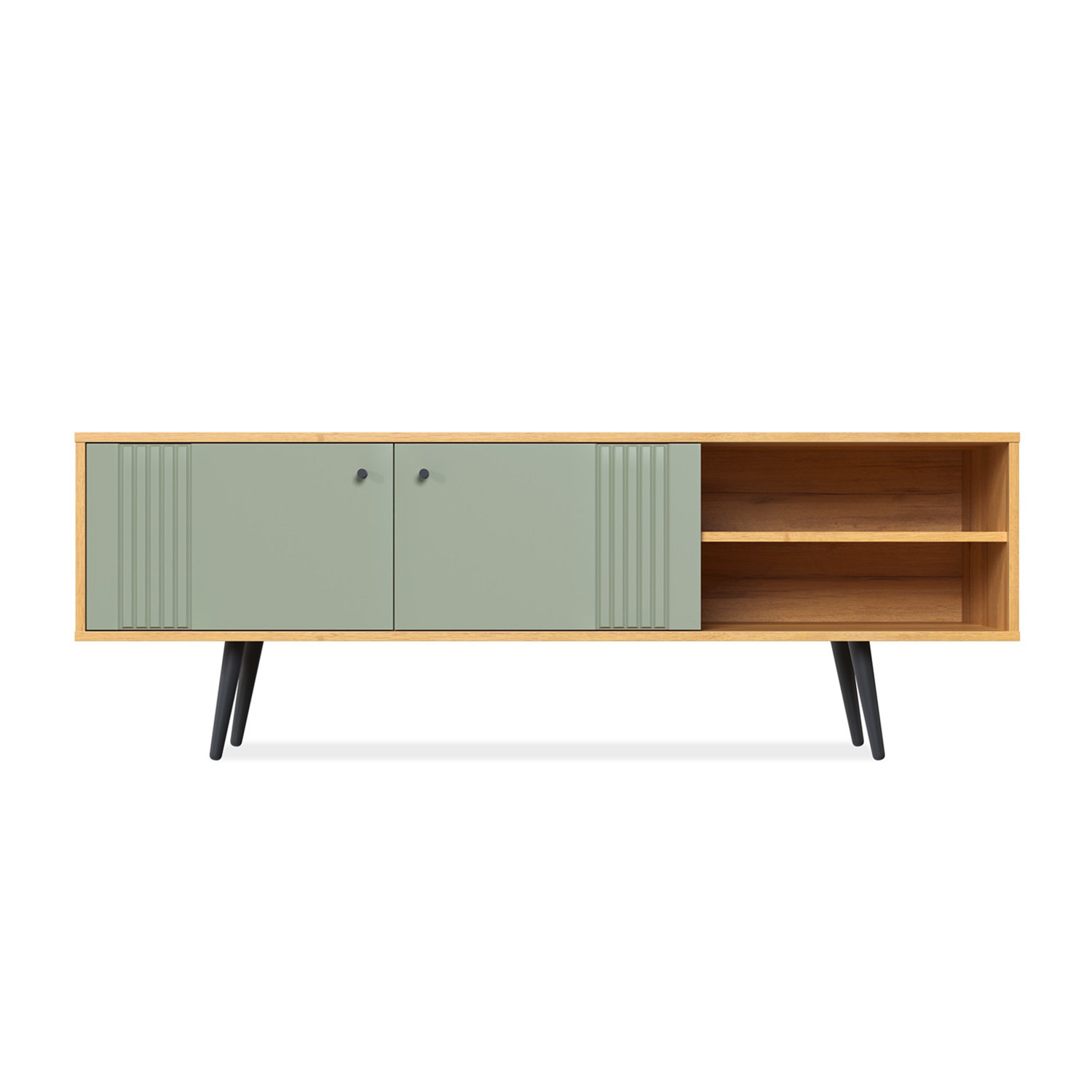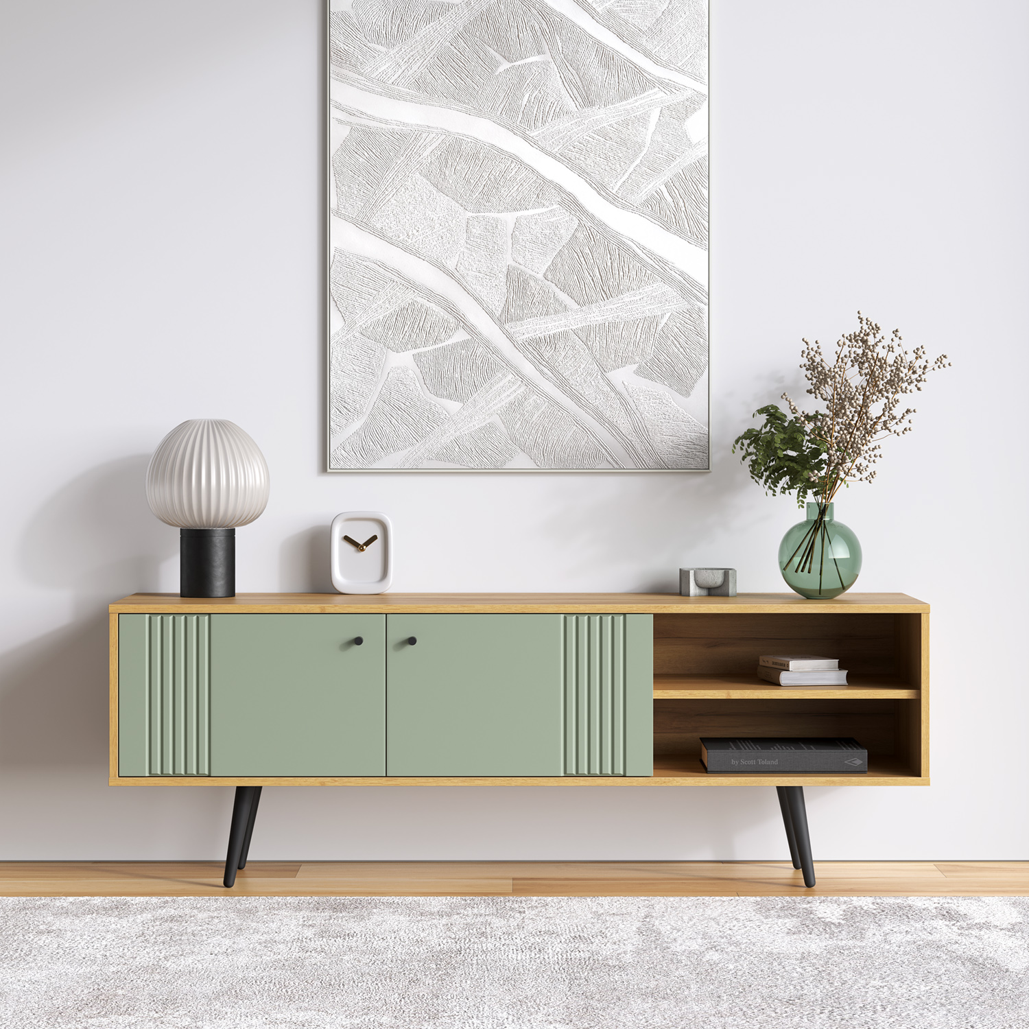 Тумба под телевизор Вега Саксония представляет собой изысканное сочетание современного дизайна дизайна и практичного комфорта. ТВ тумба доступна в двух исполнениях, каждое из которых создано для создания неповторимой атмосферы в вашем интерьере. Дуб крафт золотой + серо-зеленый – современное решение для тех, кто ценит стильные контрасты. Сочетание золотого дуба с благородным серо-зеленым оттенком создает свежий и актуальный образ, прекрасно вписывающийся в современные интерьеры.